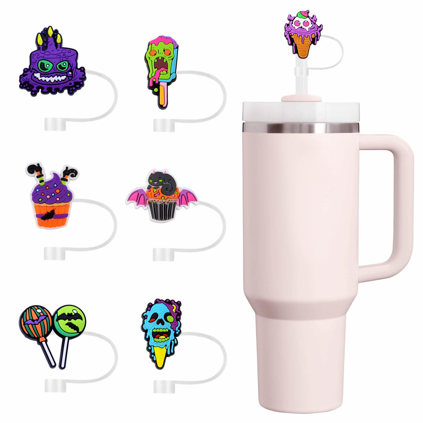 Série Comida de Halloween Tampa de Canudo Temu Acessórios para Copo com Canudo Plugue de Canudo de Boneca Fofa de Desenho Animado Tampa de Canudo de Silicone