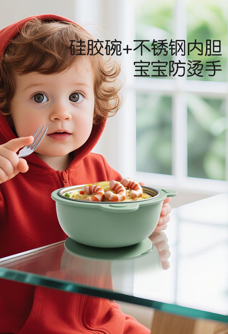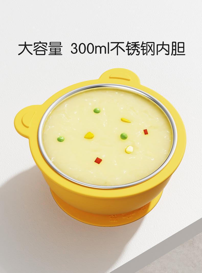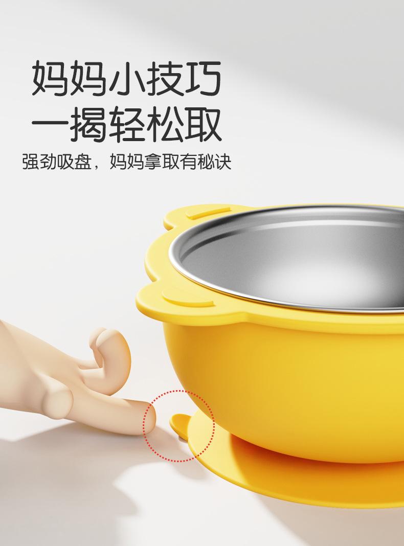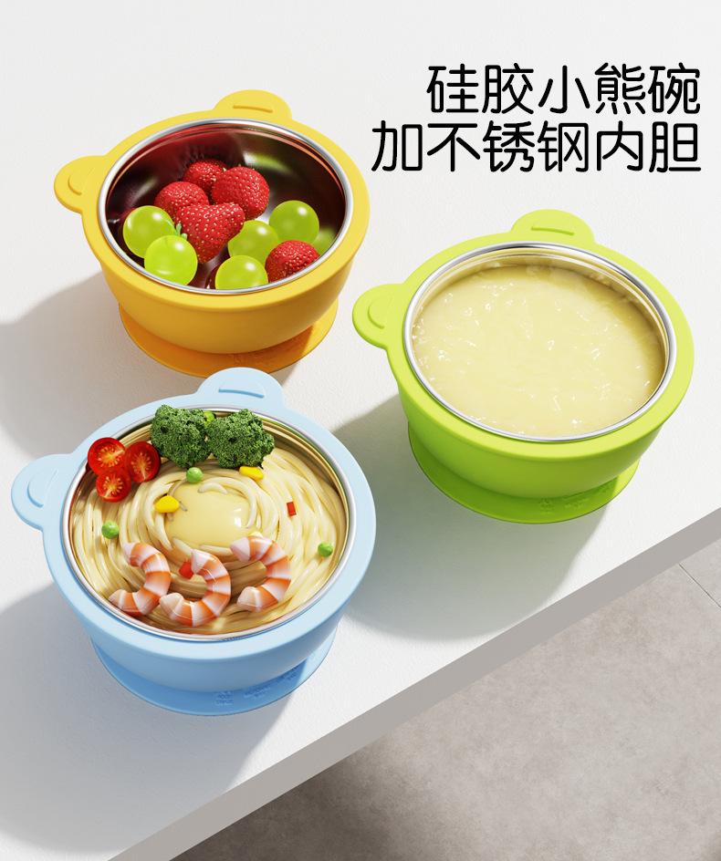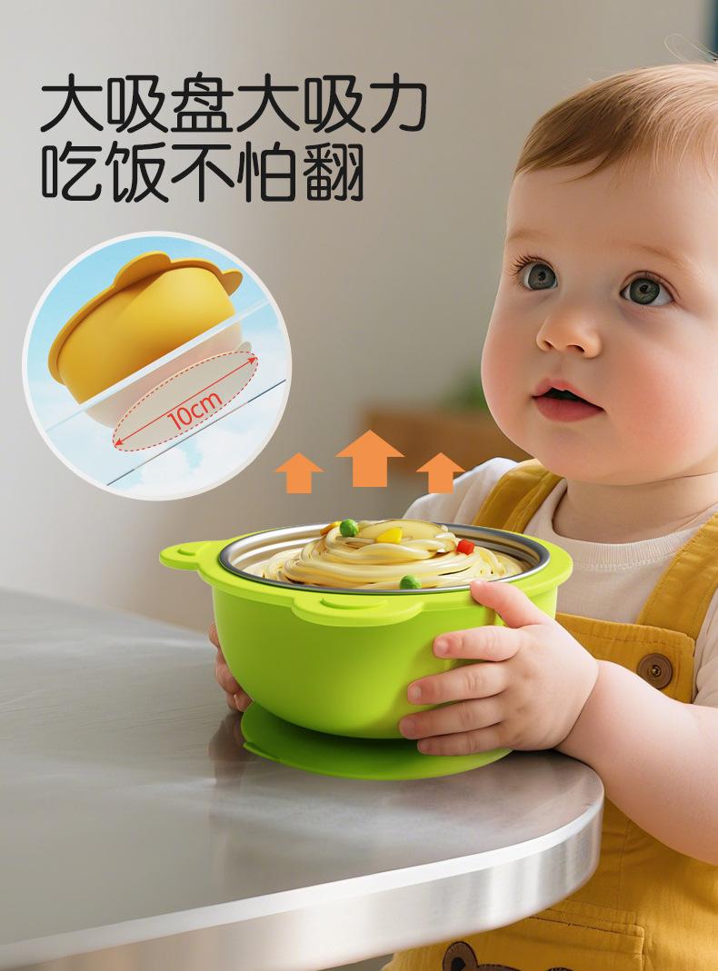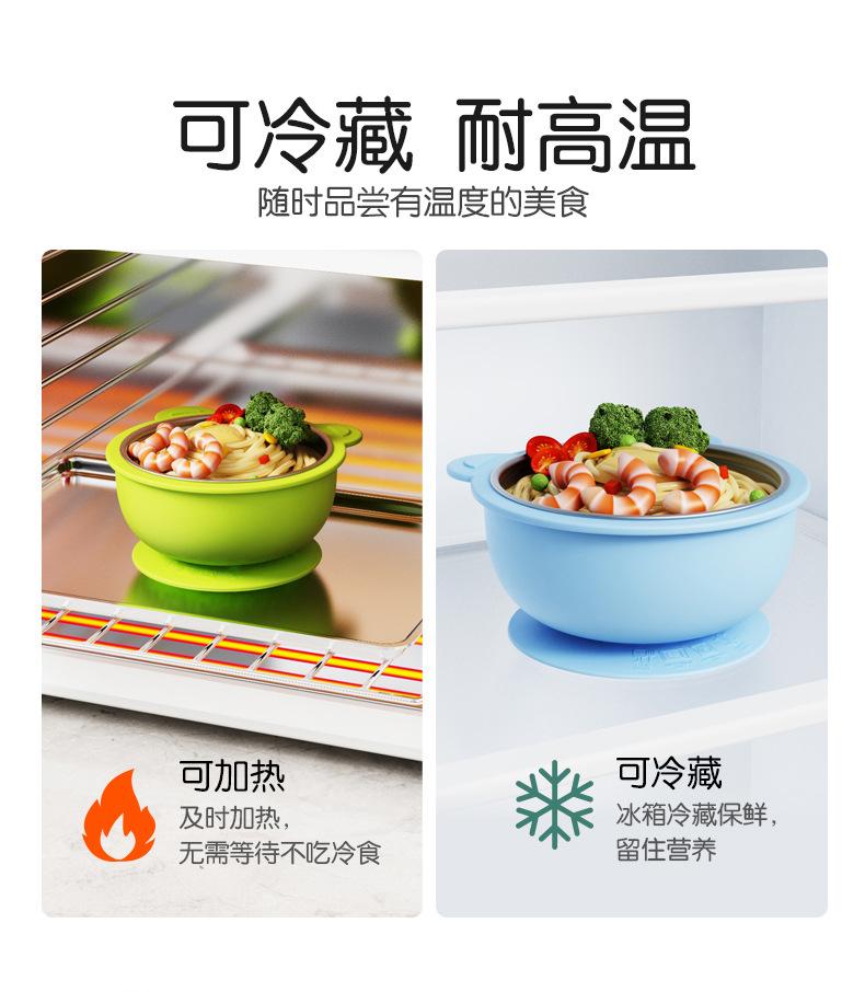 Pode ser combinado com um revestimento interno de aço inoxidável, ventosa ampliada, design espessado, tigela para bebê aprender a comer papinha, nutrição mais equilibrada, removível,