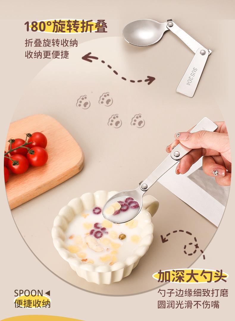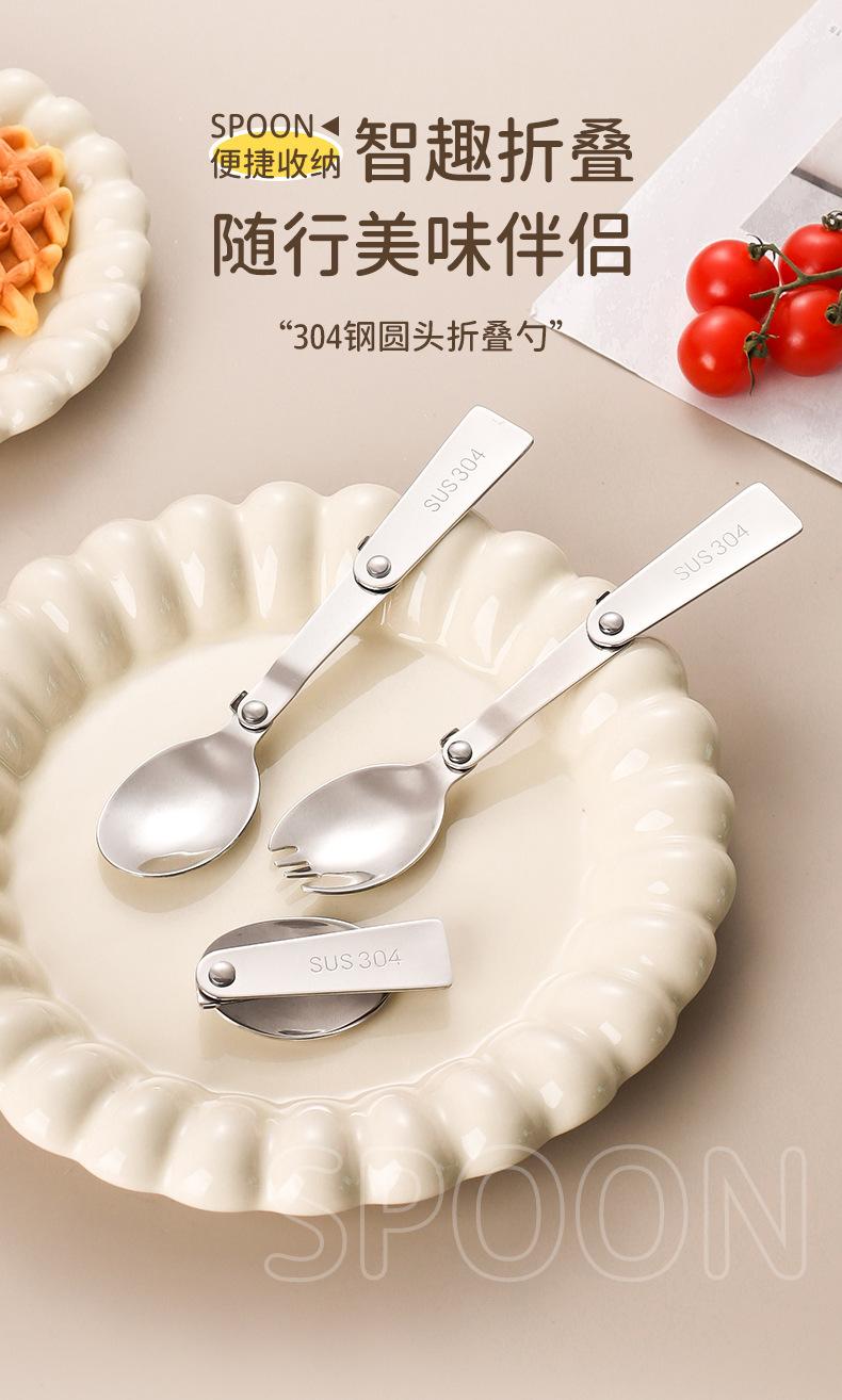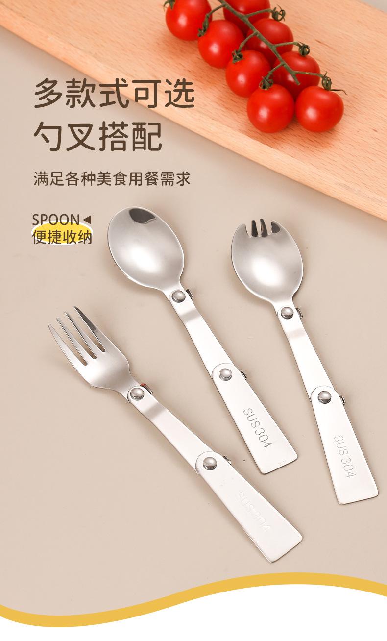 Compre Talheres Domésticos de Aço Inoxidável 304 de Alta Qualidade para Alimentos, Colher Dobrável Tripla, Colher e Garfo Portáteis para Camping e Viagens ao Ar Livre no atacado no Joom.pro