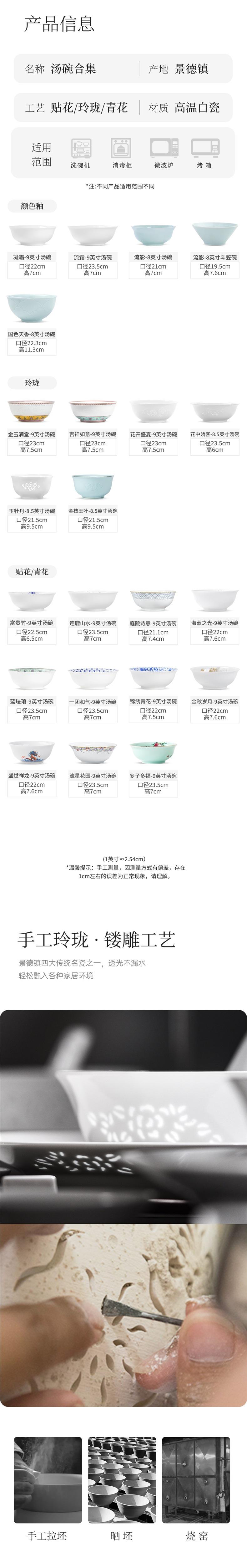-----------color glaze-----------, Moon White - 9-inch Soup Bowl - Single, Jade Peony - 8-inch Soup Bowl - Sin...