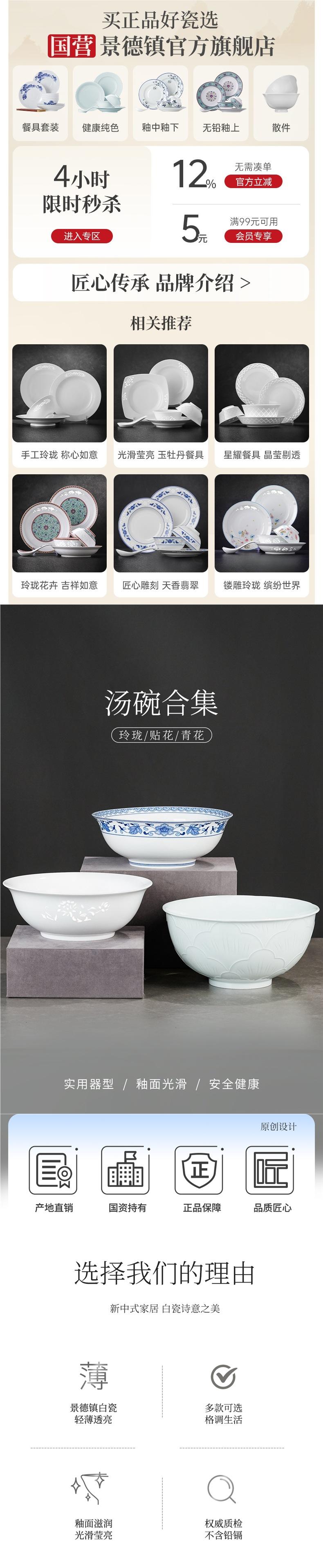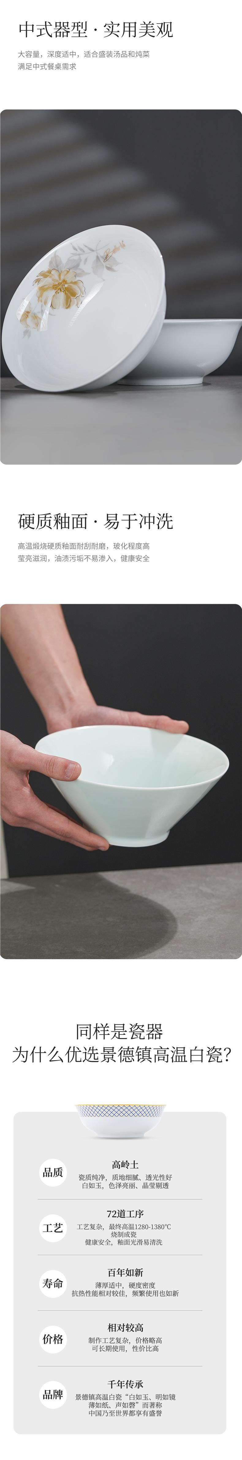 Tigela de Sopa de Cerâmica de 9 polegadas Tigela Grande para Macarrão Louça Chinesa Peça Única para Uso Doméstico Tigela de Arroz Exquisita