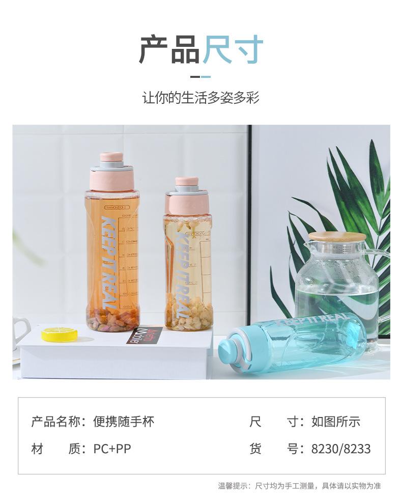 Fitness Kettle Copo de Plástico Simples Portátil Grande Capacidade Copo de Água Esportivo para Homens e Mulheres Estudantes Copo Portátil Copo de Chá Resistente a Quedas