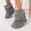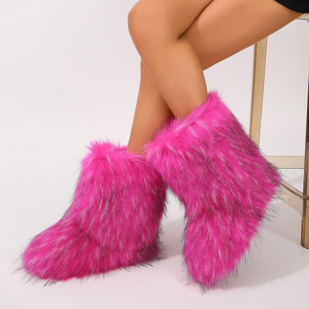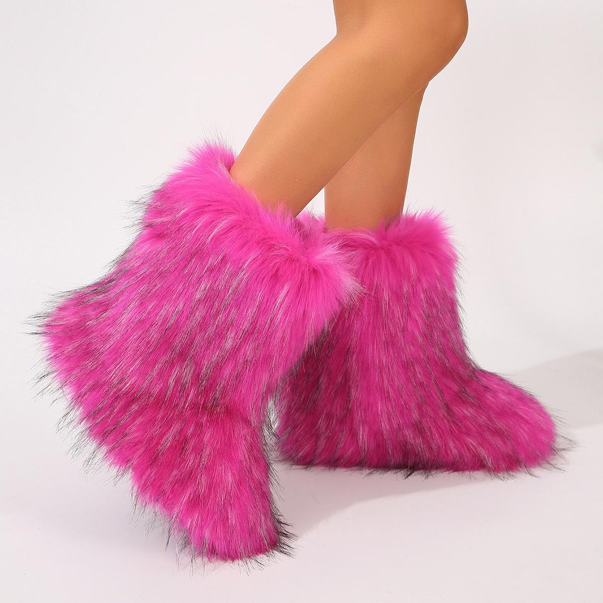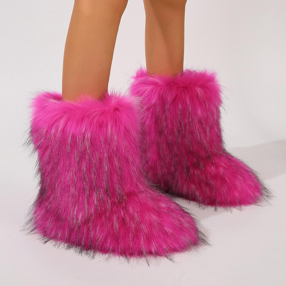 Botas de Neve Femininas Transfronteiriças Europeias e Americanas Flat Cano Alto Pele Sintética de Guaxinim Raposa Pele Sintética Inverno Quente Cano Médio