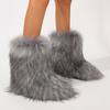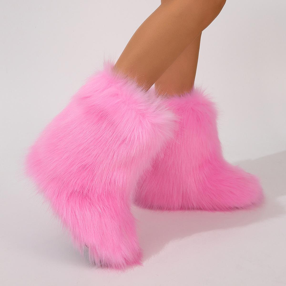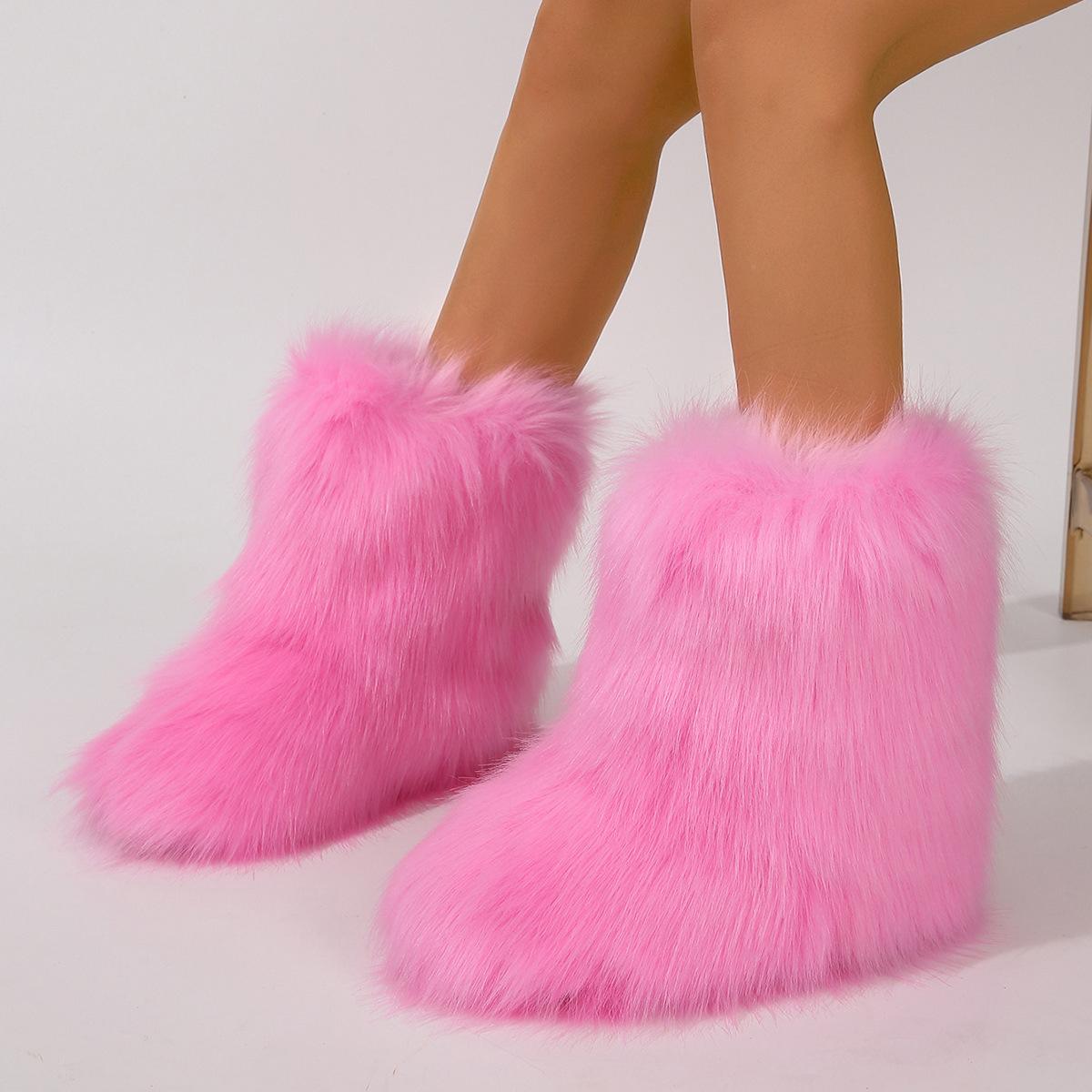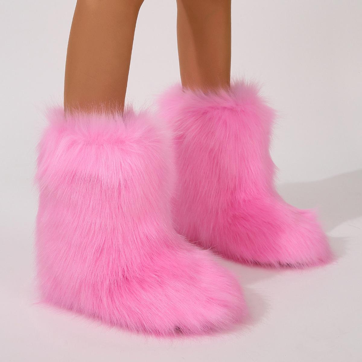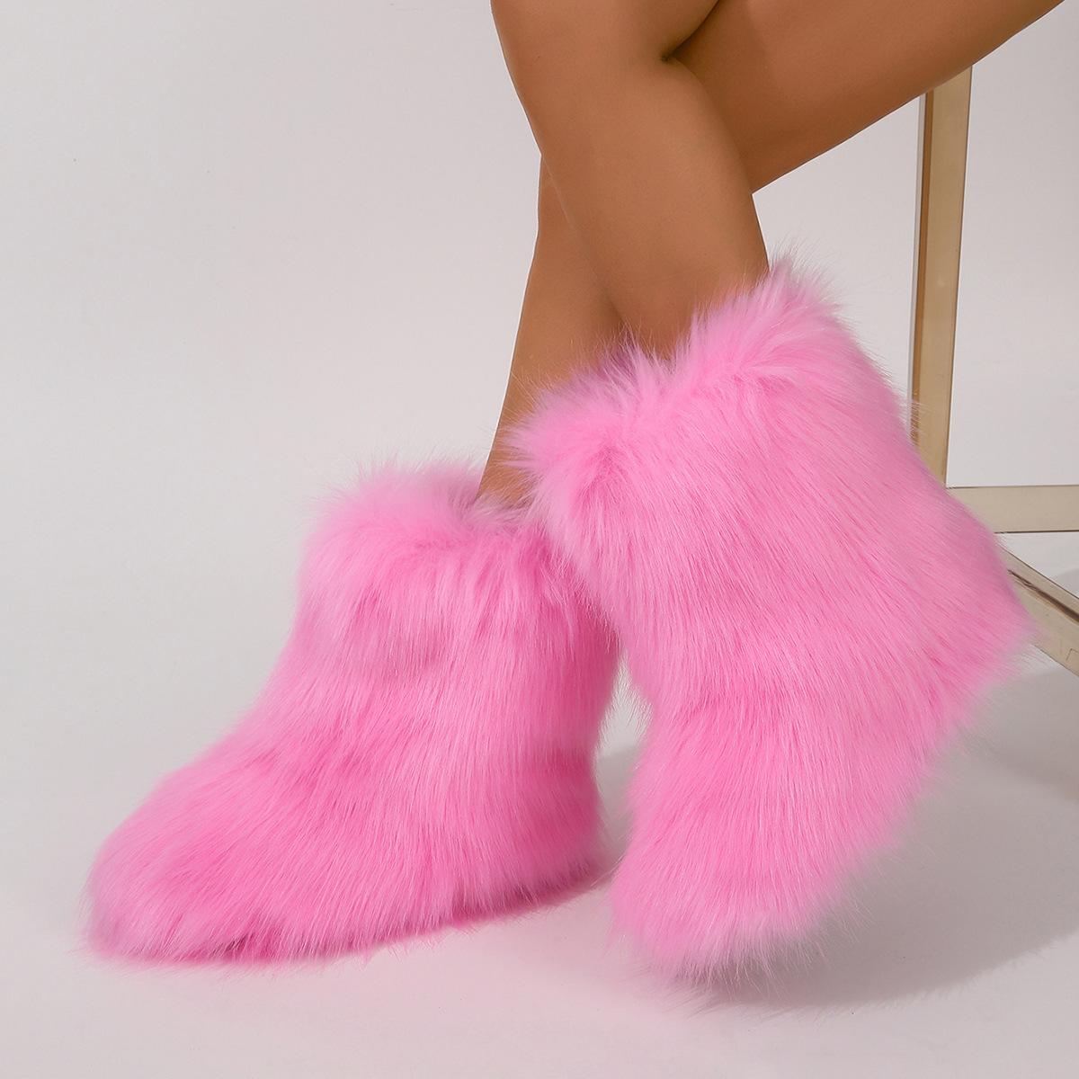 Botas de Neve Femininas Transfronteiriças Europeias e Americanas Flat Cano Alto Pele Sintética de Guaxinim Raposa Pele Sintética Inverno Quente Cano Médio