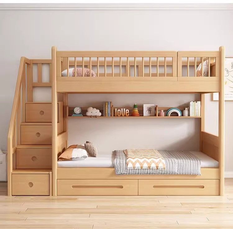 Beliche de madeira de faia beliche de madeira maciça cama infantil alta e baixa para apartamento pequeno cama toda de madeira maciça cama pai-filho cama de casal