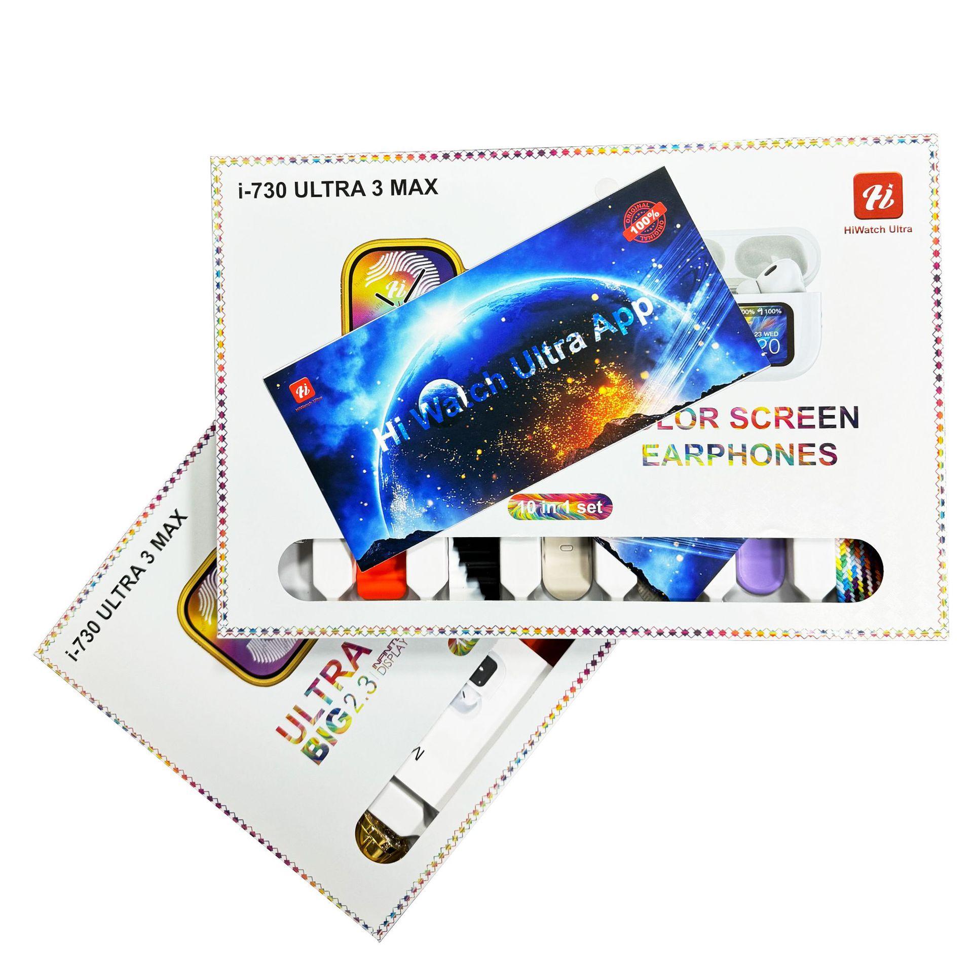 Smartwatch i730 Ultra3 Max mais vendido no exterior com fones de ouvido, chamada Bluetooth + múltiplas pulseiras, relógio multifuncional