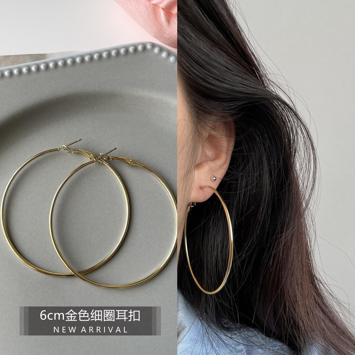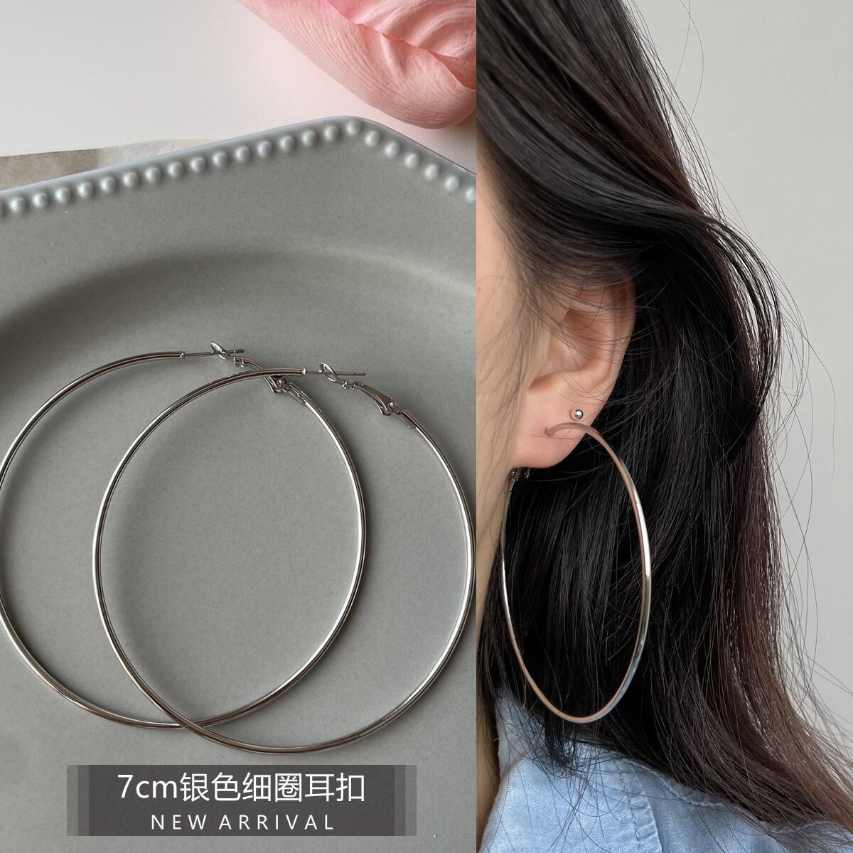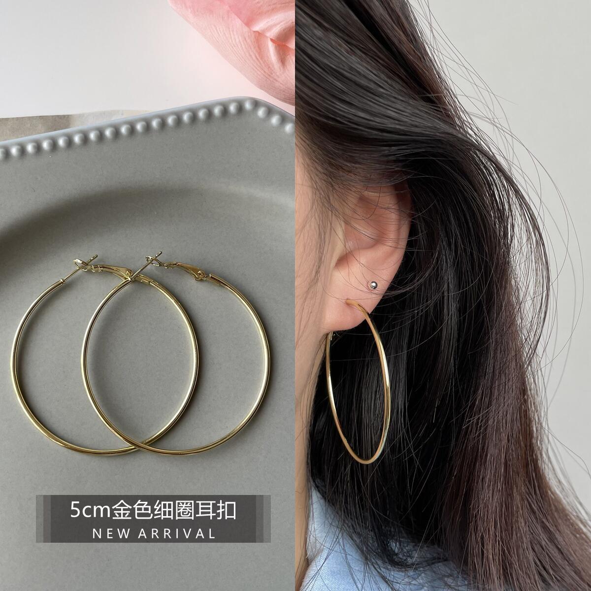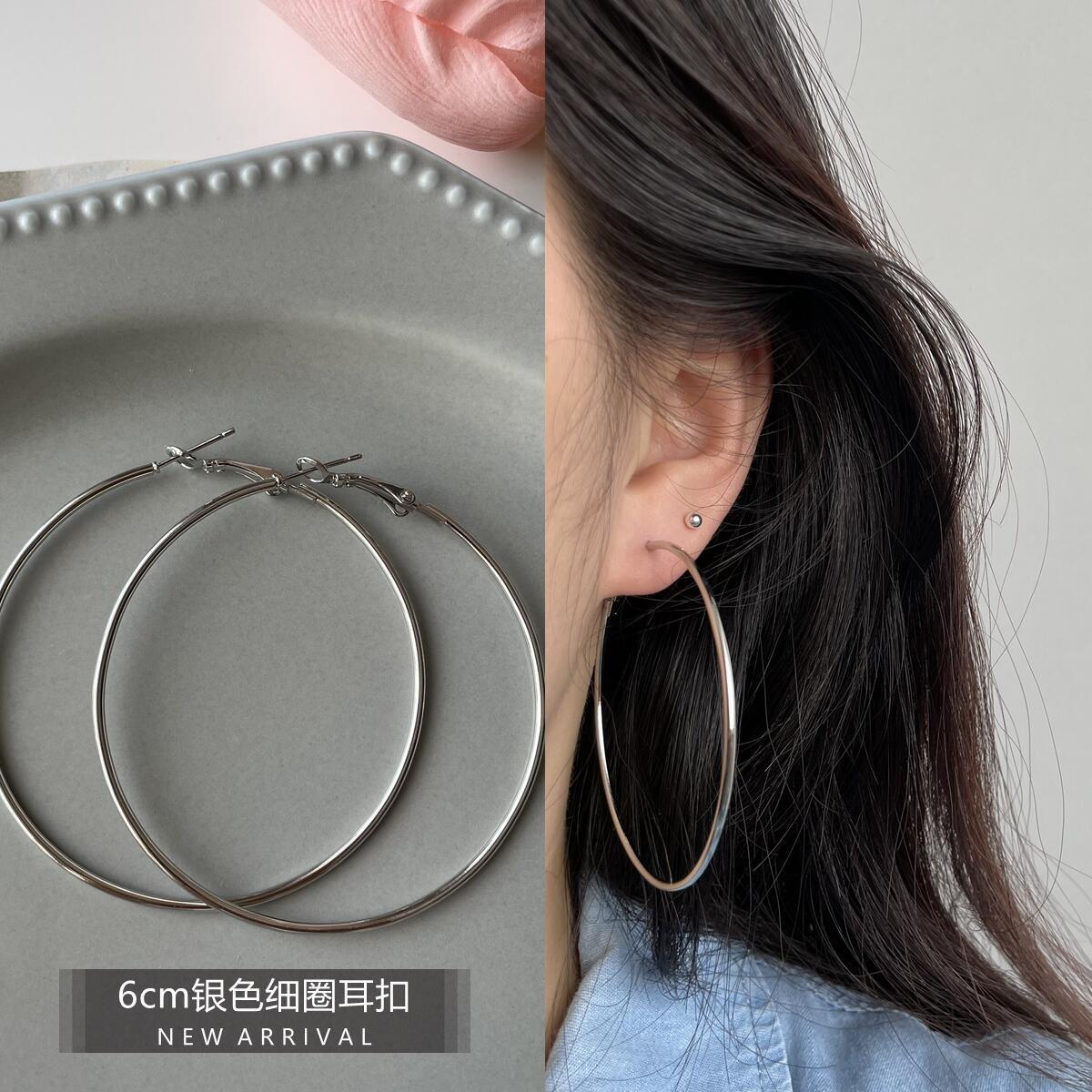 2022 nova moda verão prata grande círculo preto fino círculo europeu e americano temperamento ouro versátil brincos