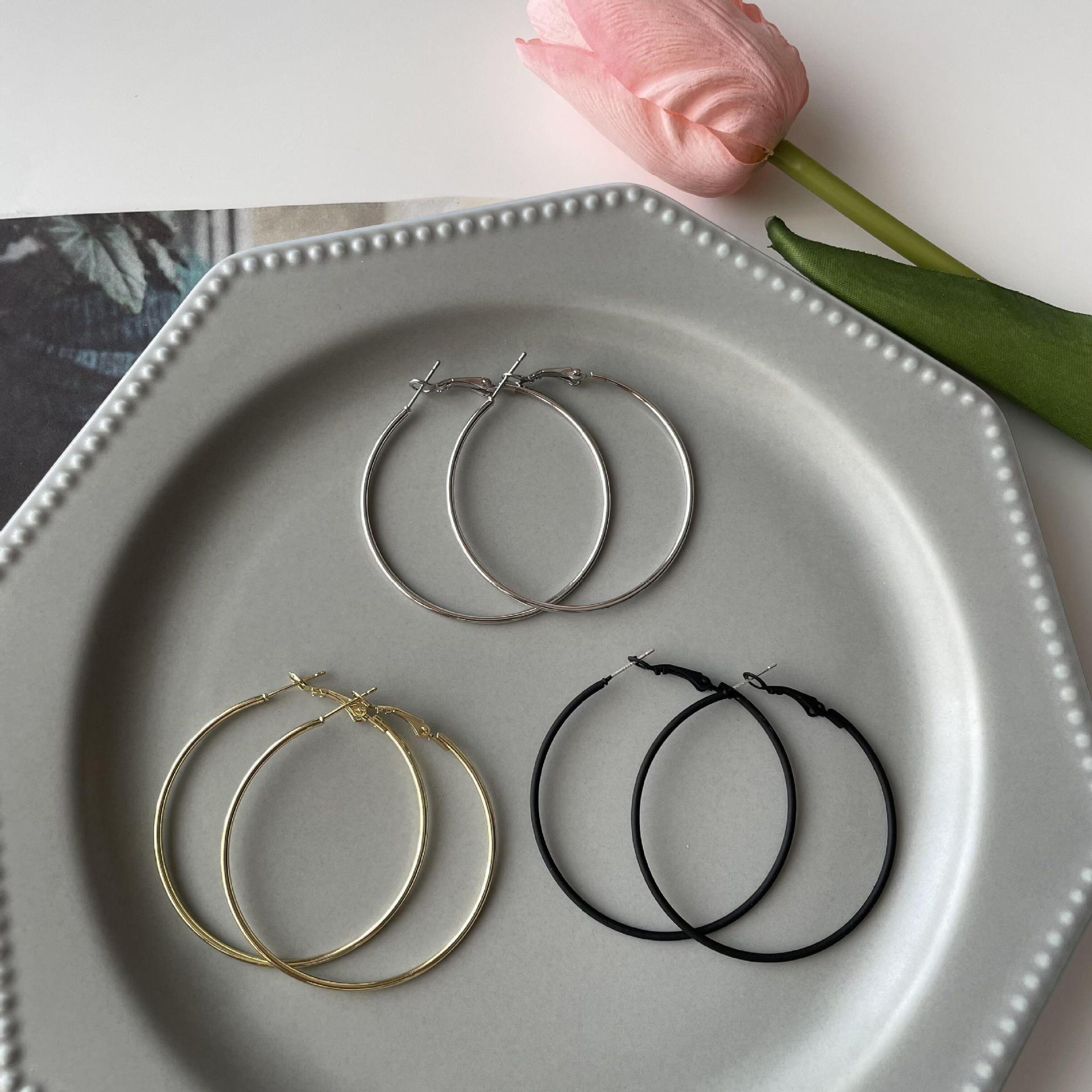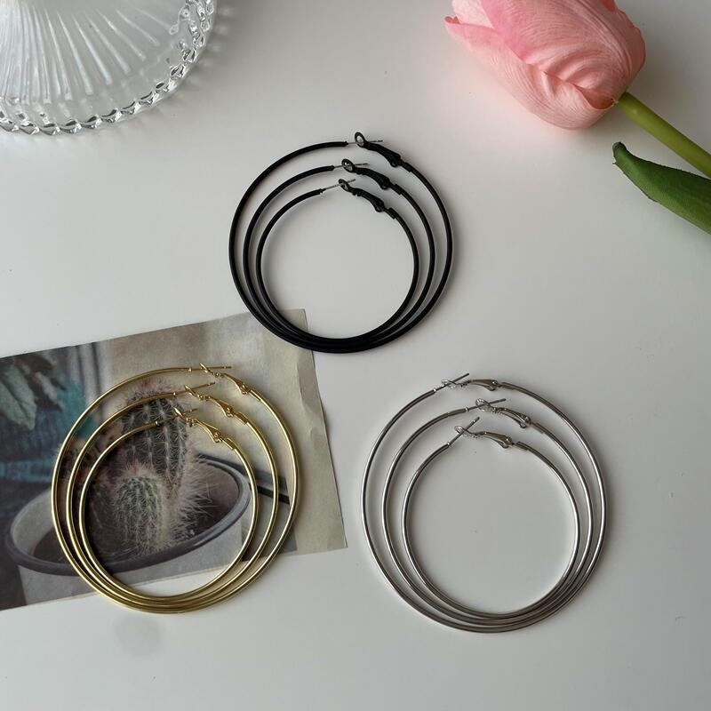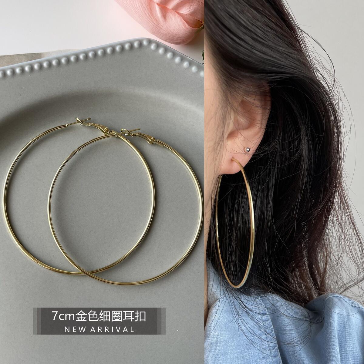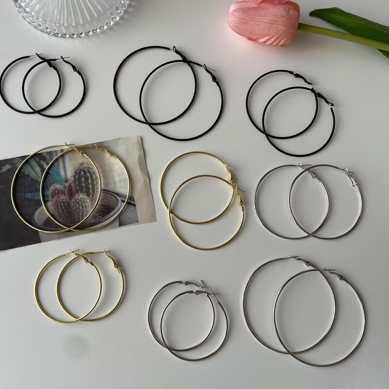 2022 nova moda verão prata grande círculo preto fino círculo europeu e americano temperamento ouro versátil brincos