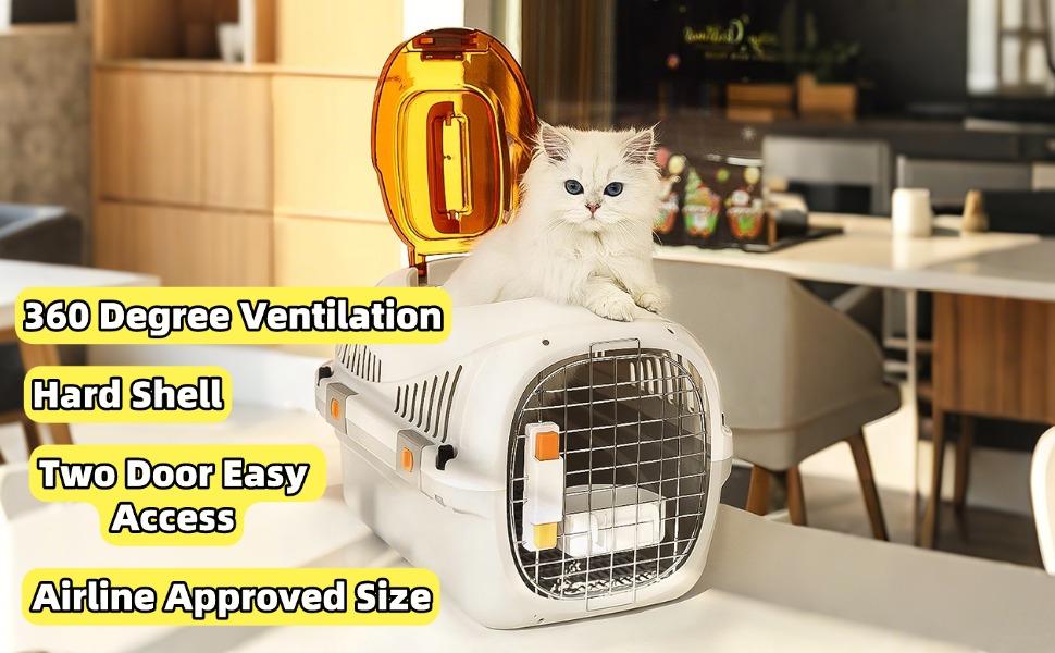 Caixa de Transporte Aéreo para Animais de Estimação, Canil Portátil para Cães, Canil de Casca Dura para Gatos e Cães Pequenos | Ventilação 360° e 4 Travas de Segurança | Aprovado para Viagem de Carro, Caminhadas ao Ar Livre e Carga Aérea