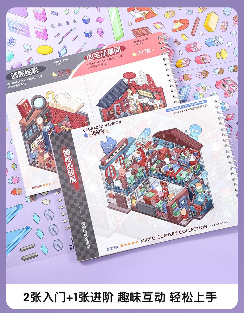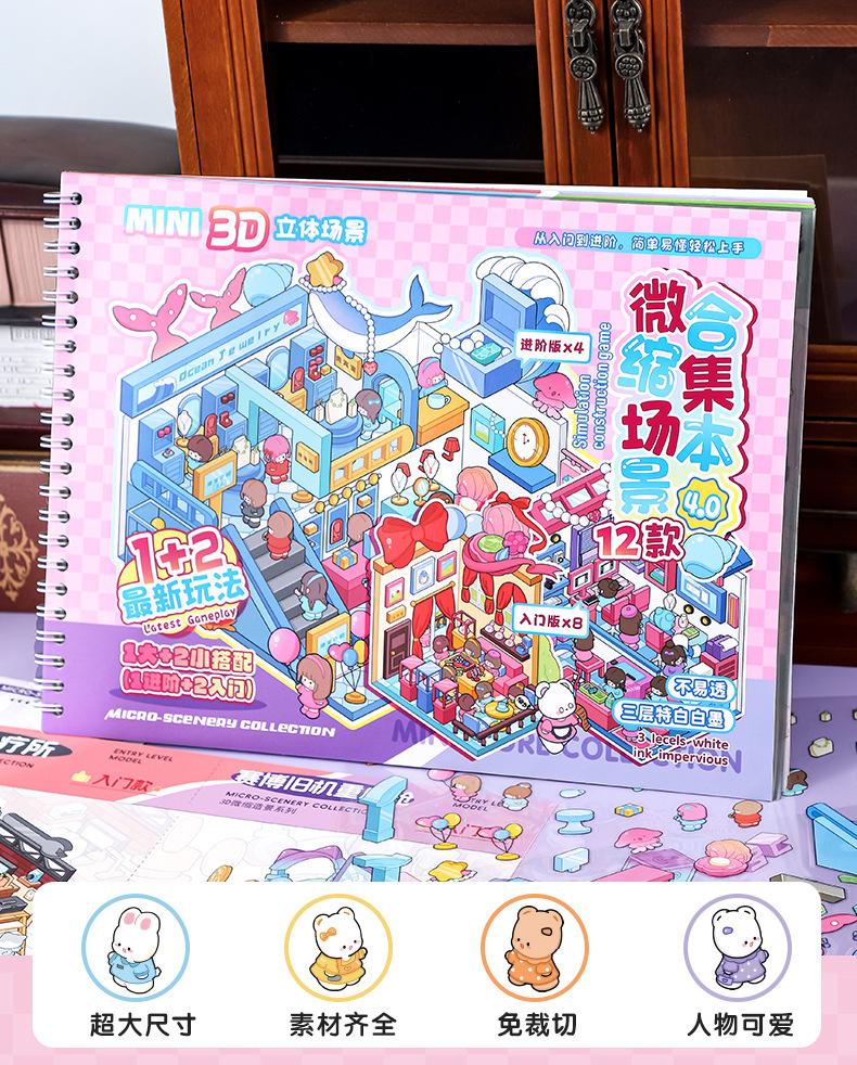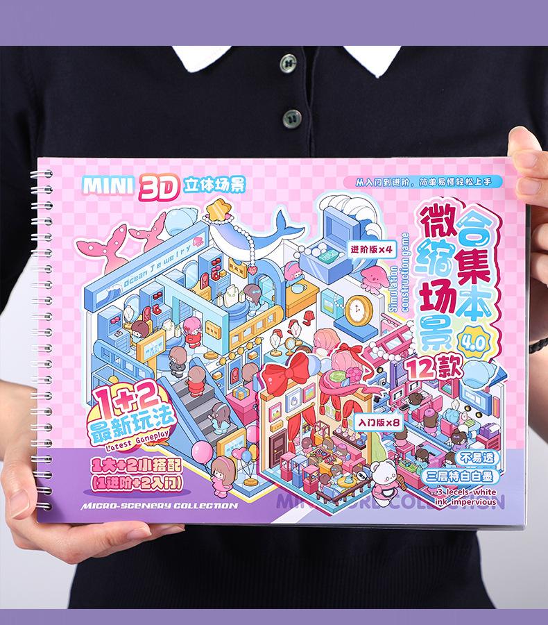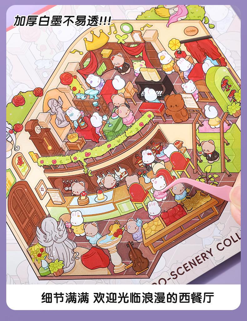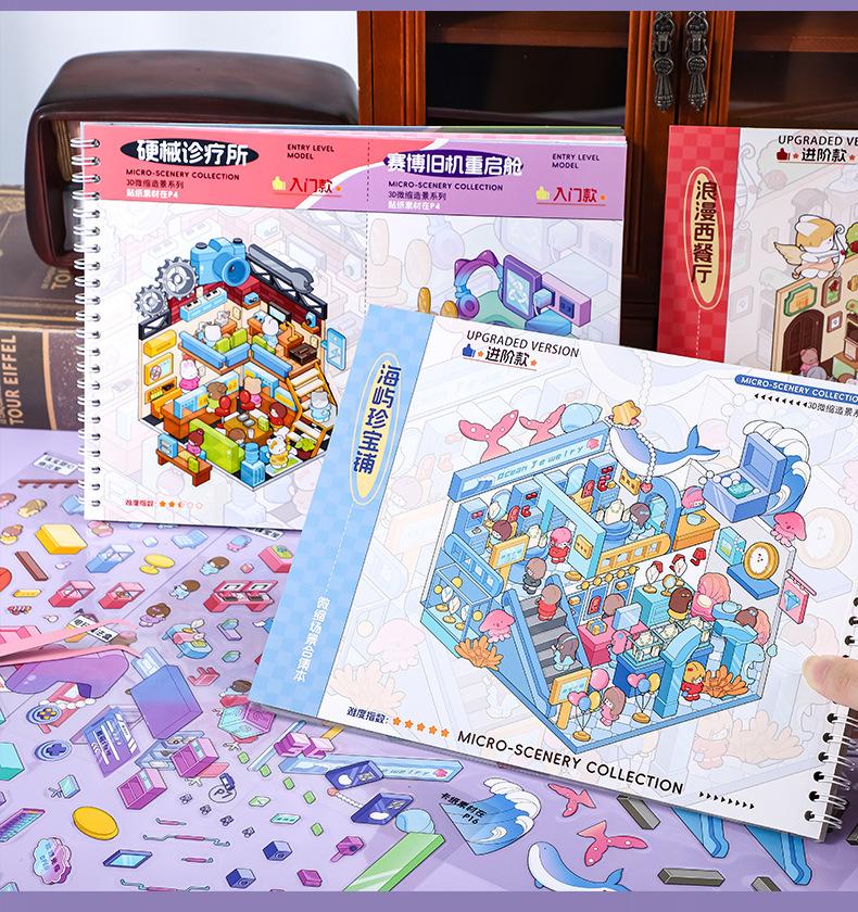 Livro Coleção de Adesivos Cena em Miniatura Adesivos Criativos de Paisagismo Cabana 3D Crianças DIY Colagem Feita à Mão Padrões Pequenos