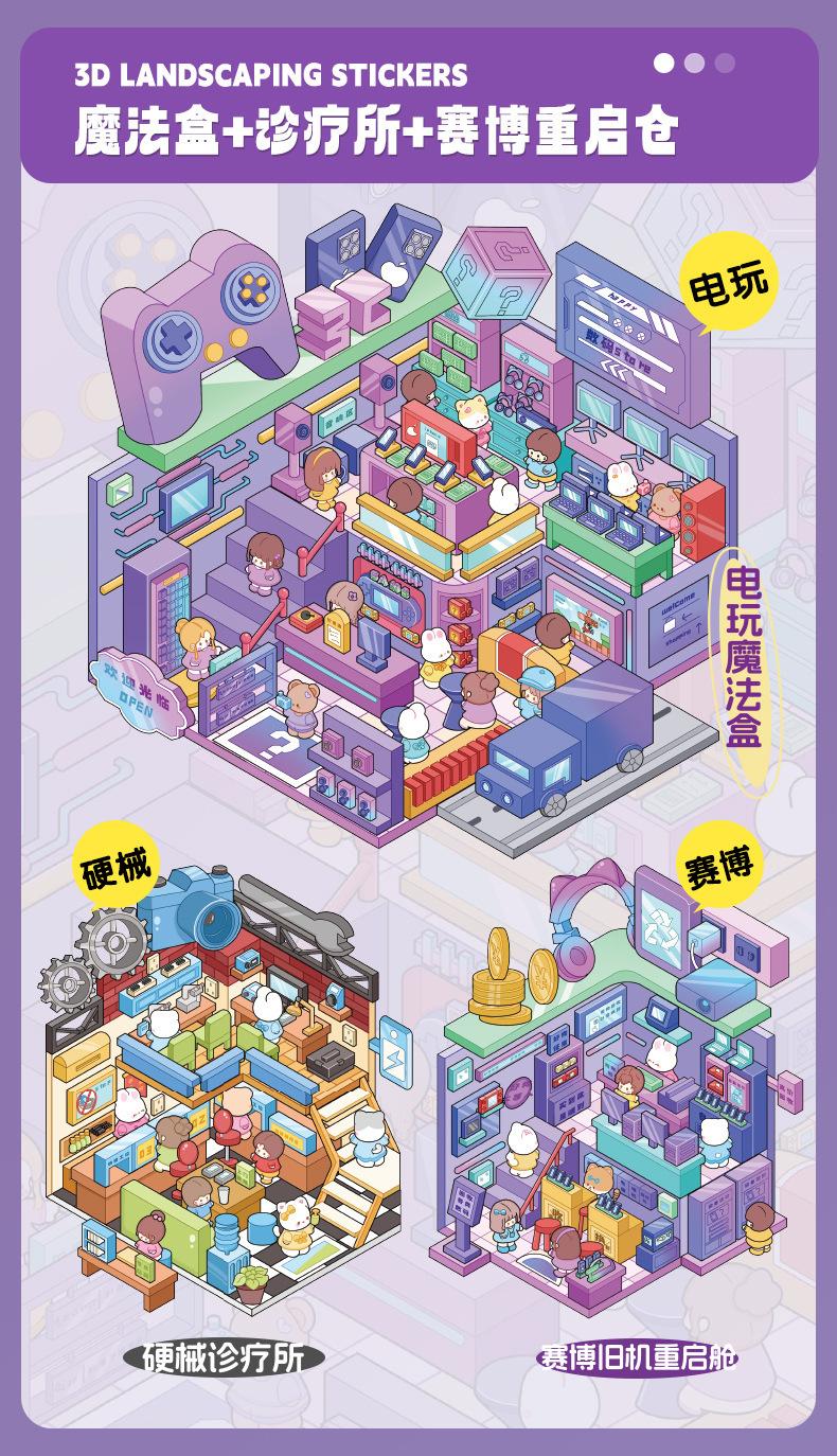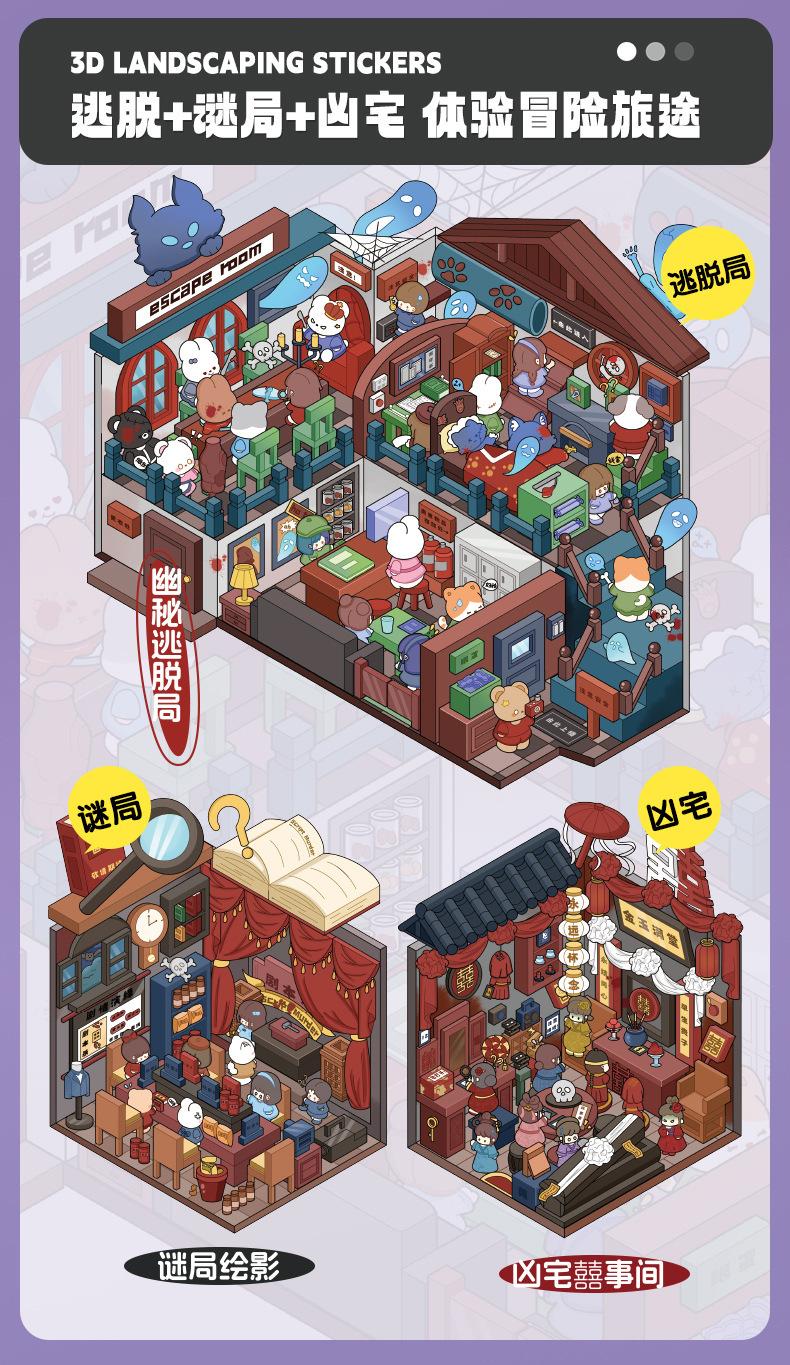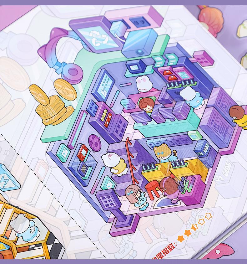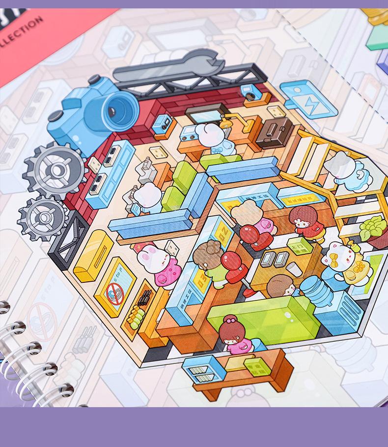 Livro Coleção de Adesivos Cena em Miniatura Adesivos Criativos de Paisagismo Cabana 3D Crianças DIY Colagem Feita à Mão Padrões Pequenos