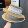 M (56-58cm) sun embroidered letter raw edge lace lace-up straw hat