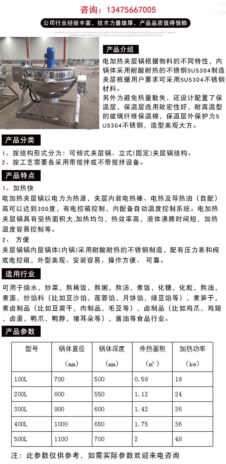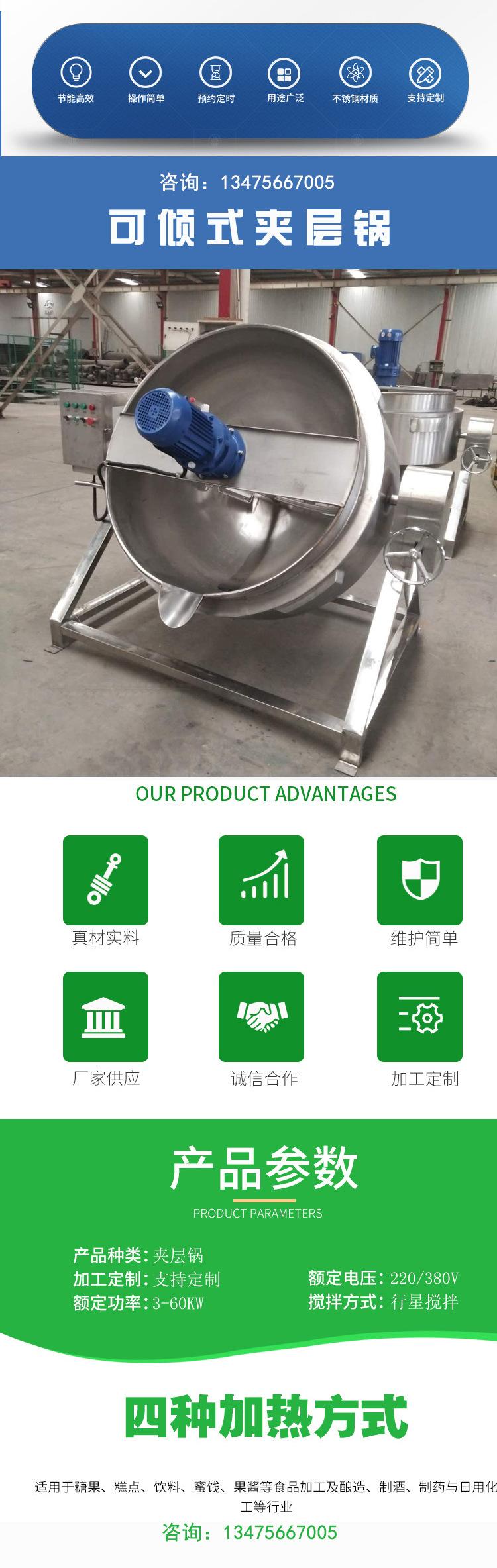 Aquecimento elétrico aço inoxidável panela sanduíche com agitação panela sanduíche a vapor totalmente automática multifuncional fervura de sopa e agitação