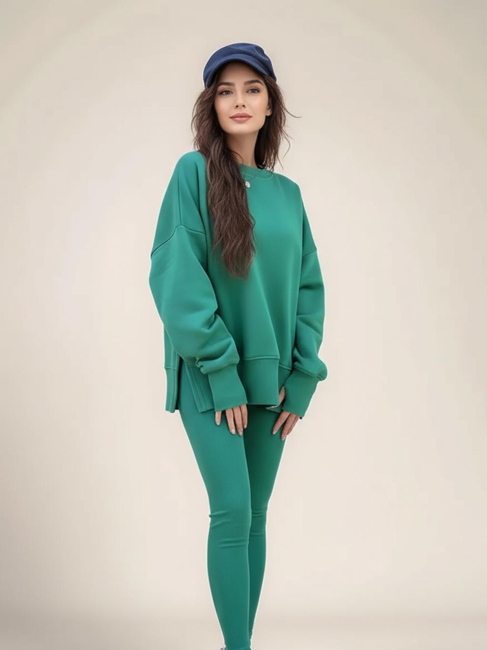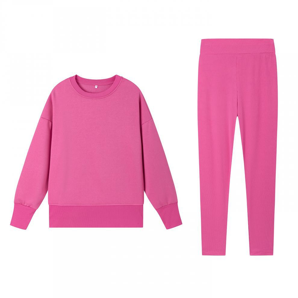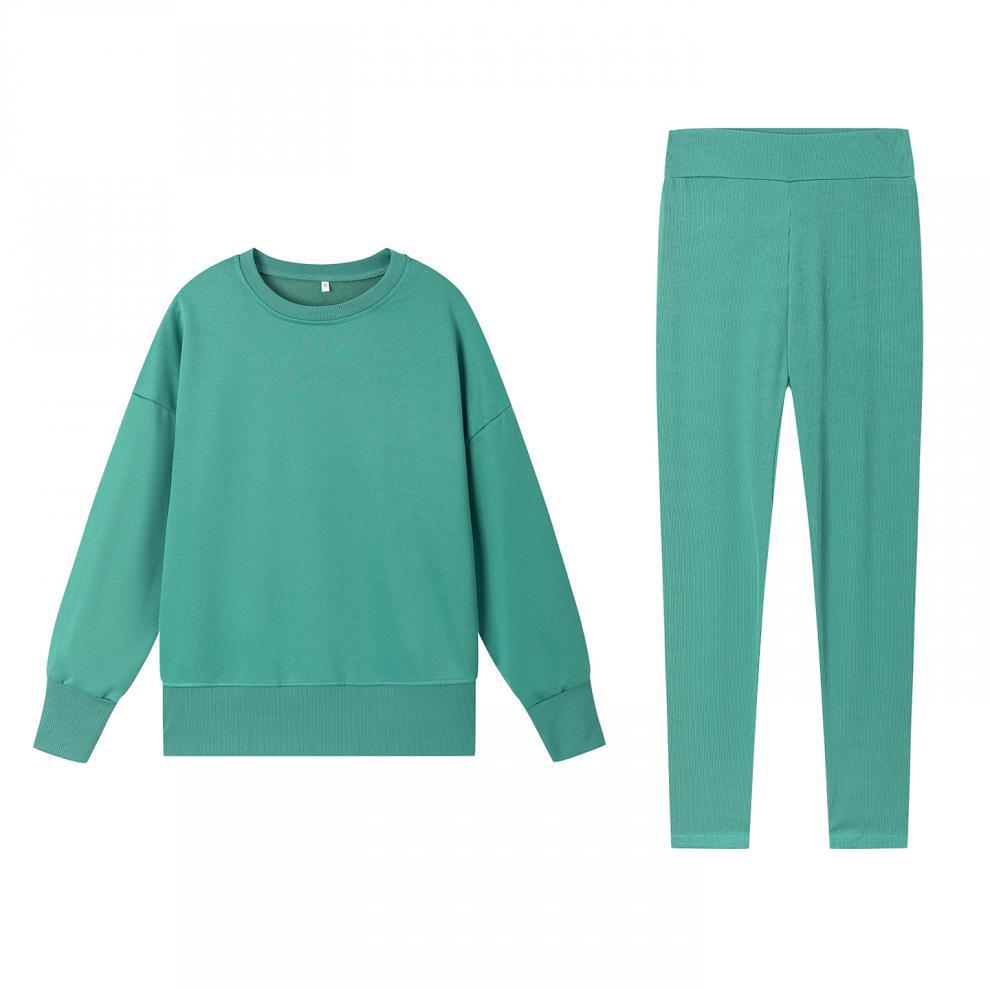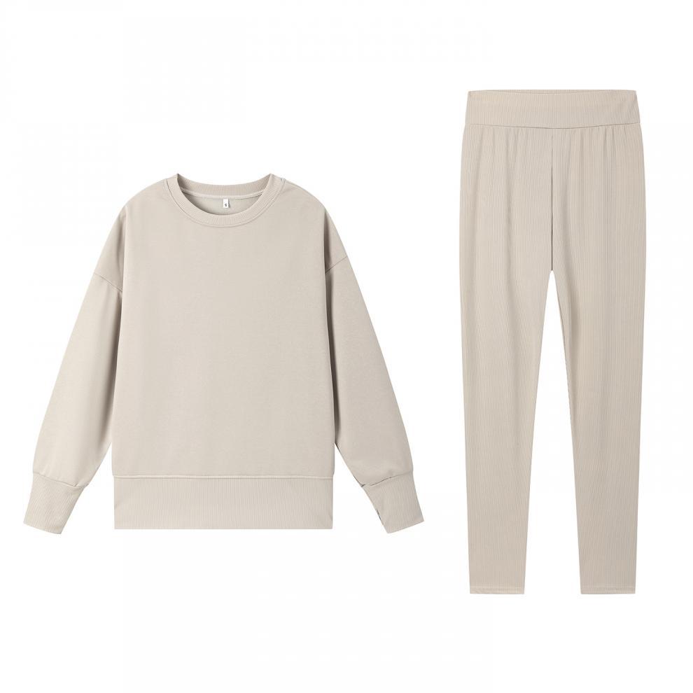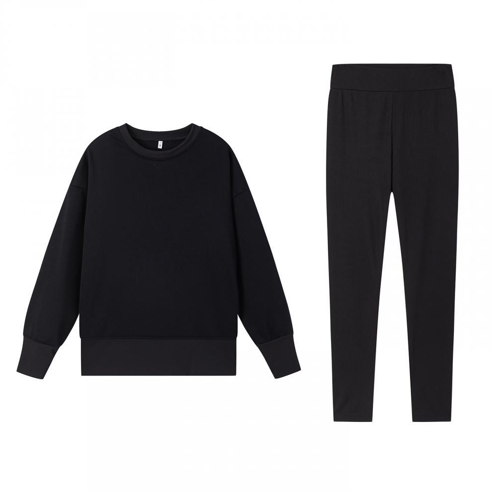 Conjunto de Moletom Feminino Europeu e Americano Casual Solto Manga Longa Gola Redonda Fenda Top Calça Longa Skinny Outono/Inverno 2025 Amazon