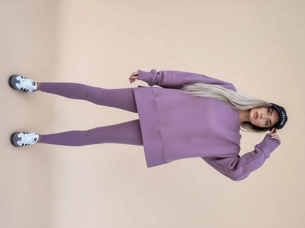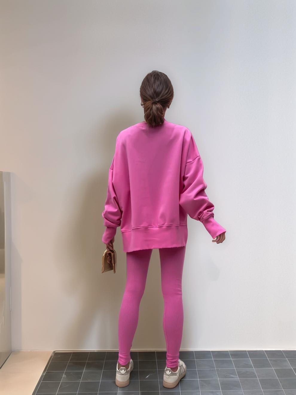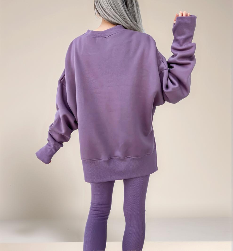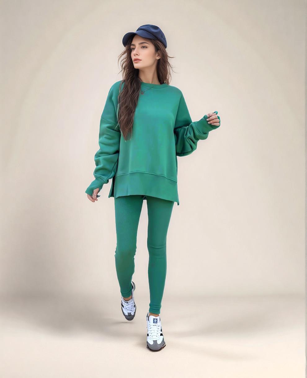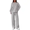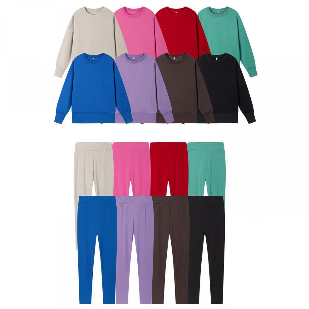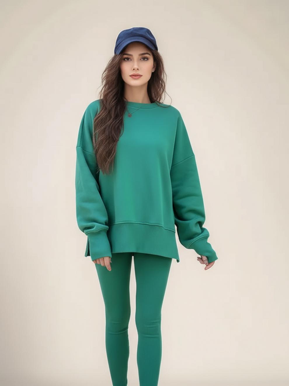 Conjunto de Moletom Feminino Europeu e Americano Casual Solto Manga Longa Gola Redonda Fenda Top Calça Longa Skinny Outono/Inverno 2025 Amazon