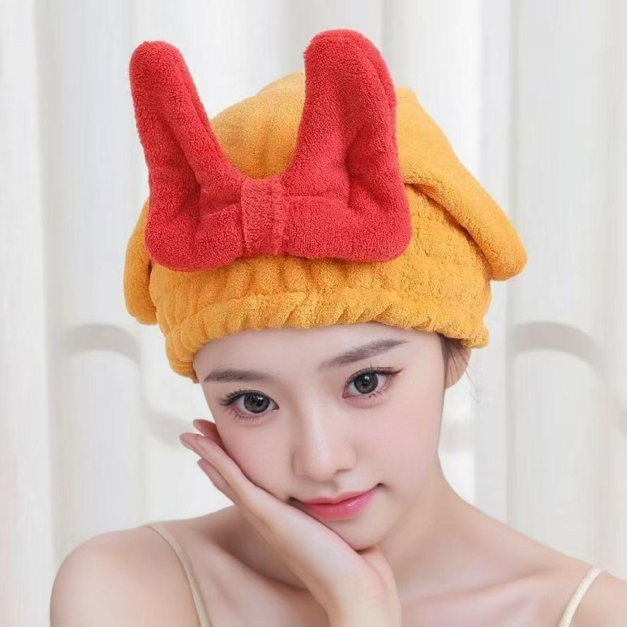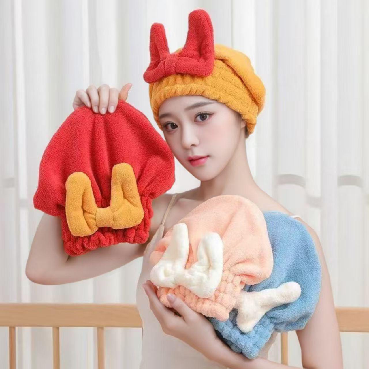 Novo Gorro de Cabelo Seco com Laço Absorvente de Secagem Rápida Bonito Laço Chapéu de Princesa Toalha de Cabelo Seco Envolvente Espessada Touca de Banho