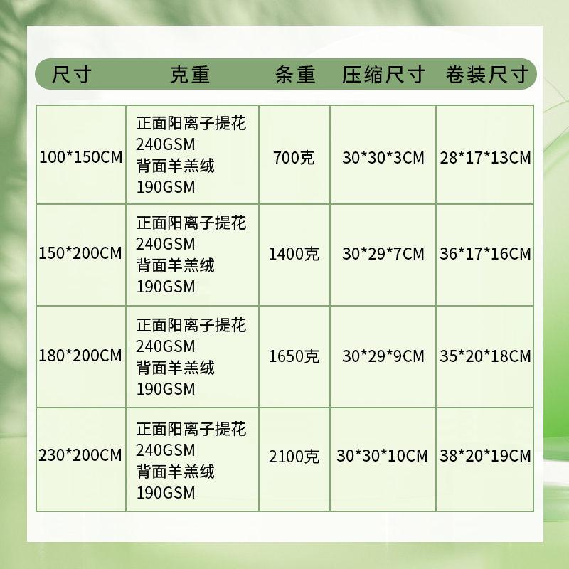100*150cm single blanket, 150*200cm single blanket, 180*200cm single blanket, 200*230cm single blanket