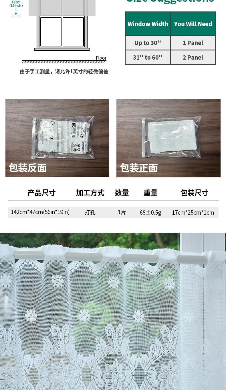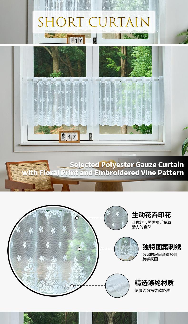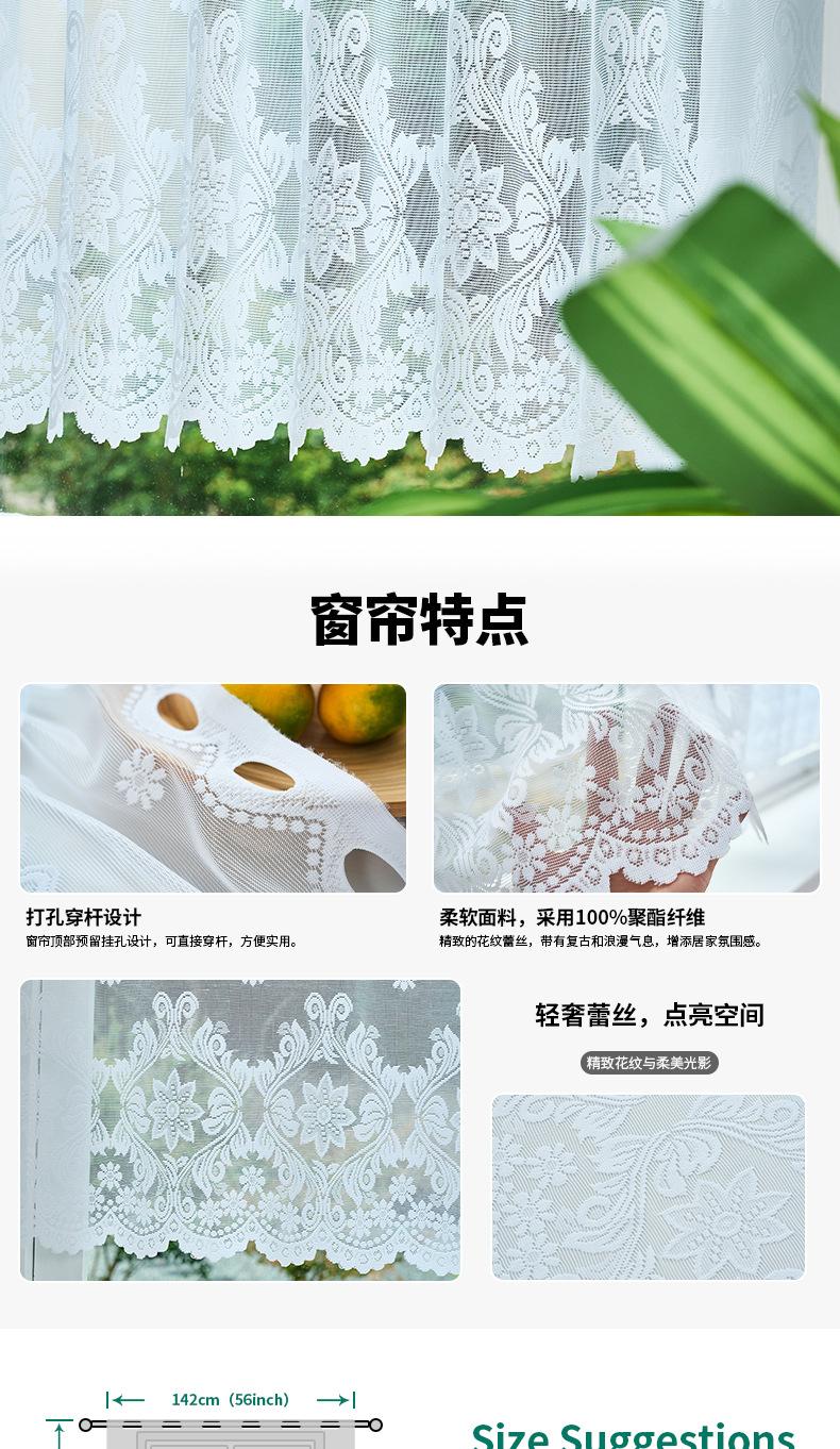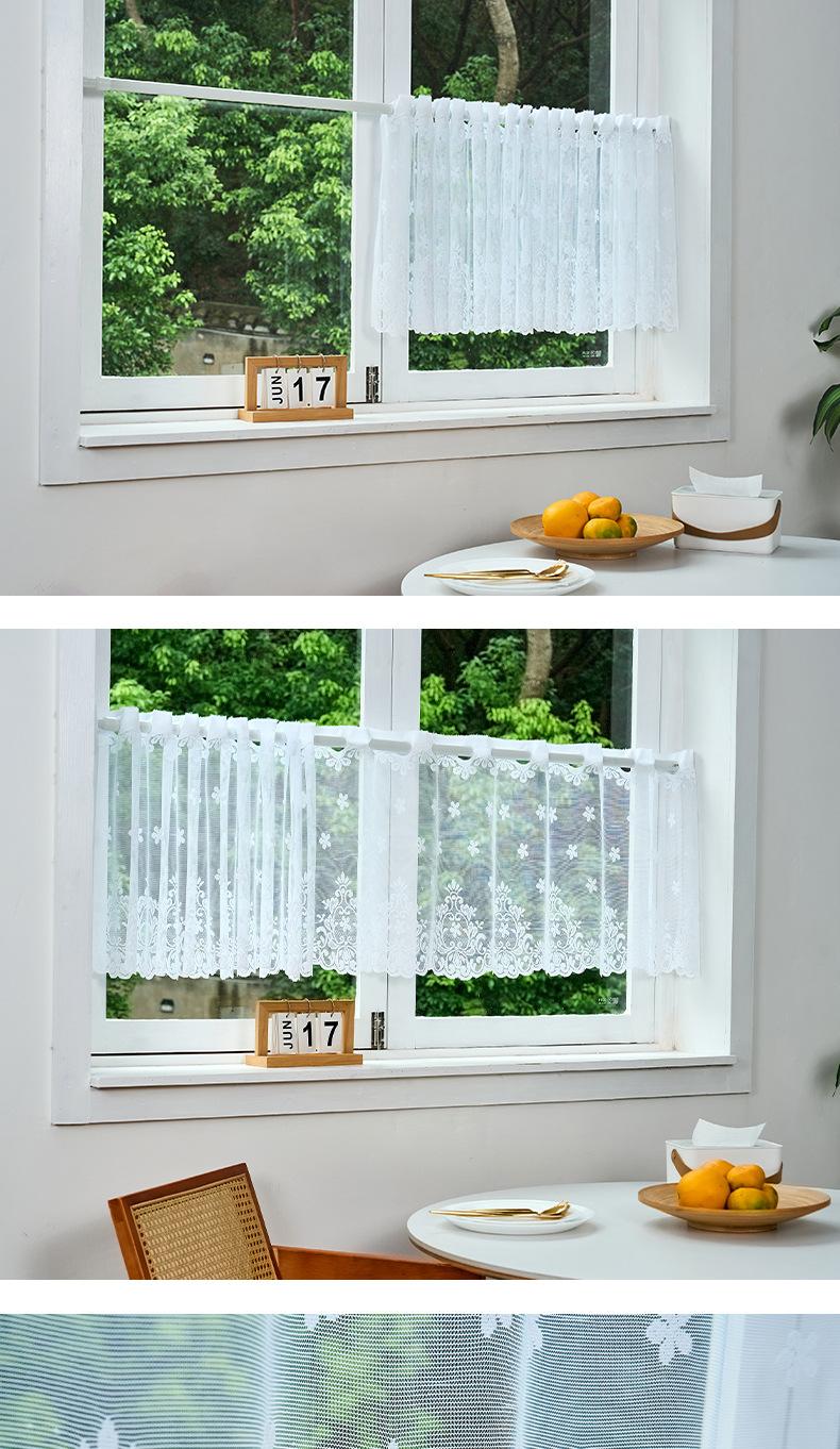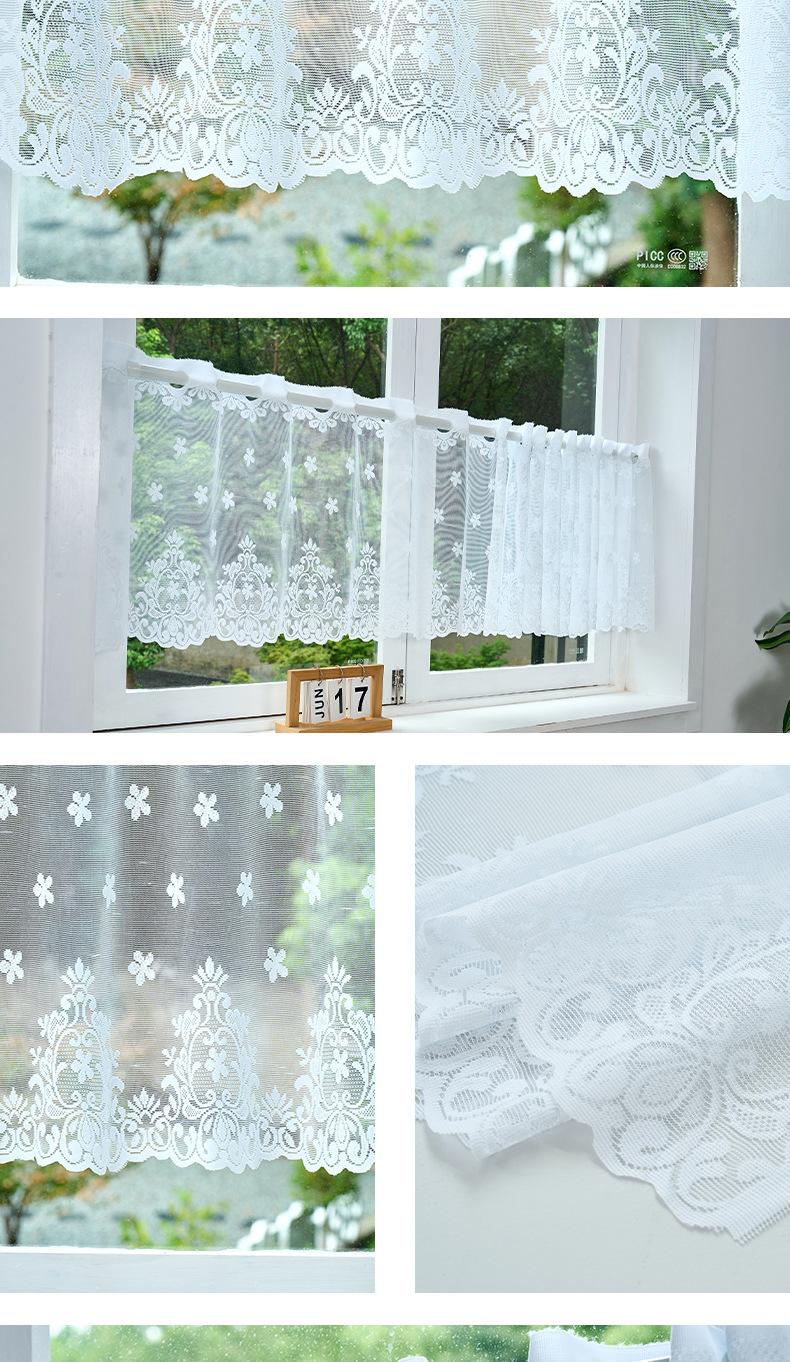 Cortina Curta Exclusiva de Renda Transfronteiriça com Bolso para Varão Comércio Exterior Cortina Voil Branca Janela Bay Window Tela de Janela Cortina Pequena Acabada Cortina de Cozinha Café