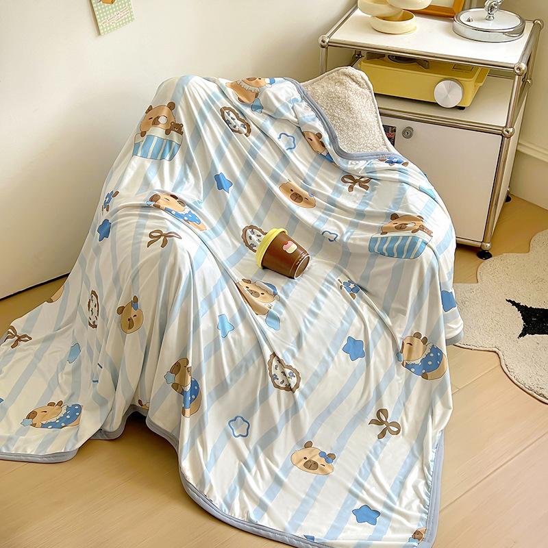 Novo Verão Multifuncional Pequeno Fresco e Bonito Desenho Animado Manta Infantil Manta Tricotada Fresca Infantil Manta de Viagem