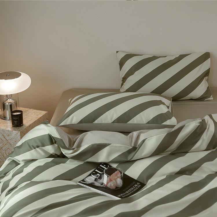 Conjunto de Cama de Quatro Peças de Algodão Cetim de Alta Qualidade Algodão de Fibras Longas Lençóis de Cama de Algodão Puro, Lençóis de Cama com Elástico e Capas de Edredom Roupa de Cama Estilo Simples