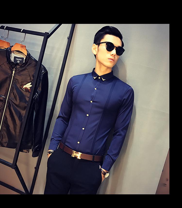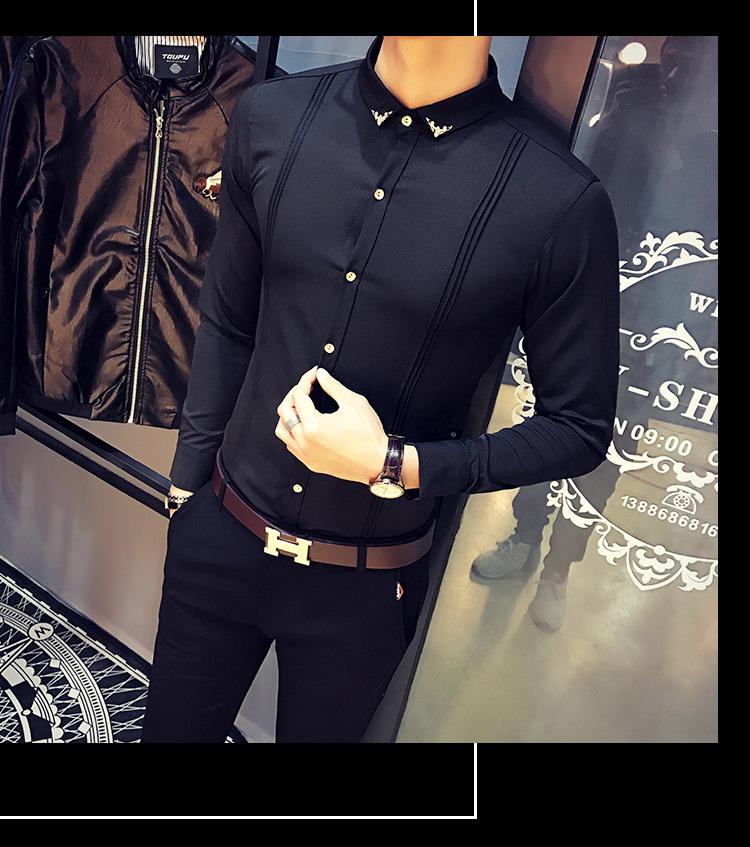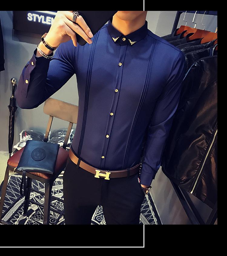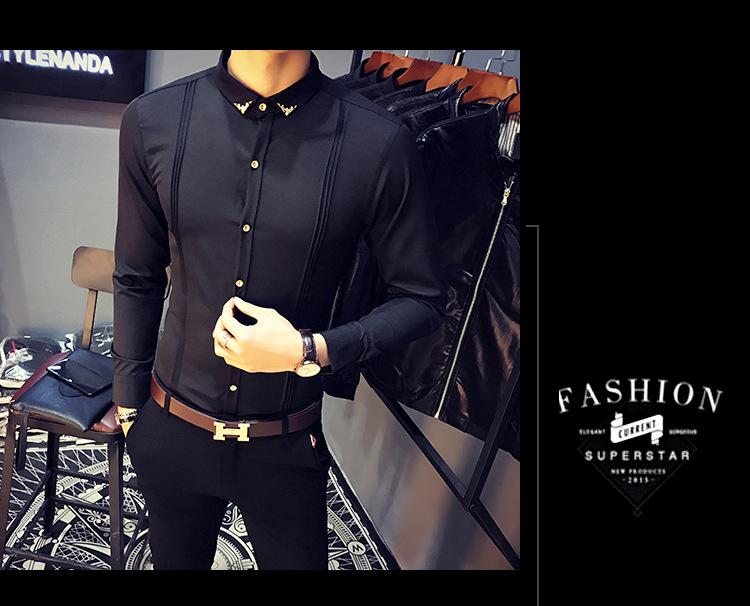 Camisa Masculina Manga Longa Slim Fit KTV Bar Roupa de Trabalho