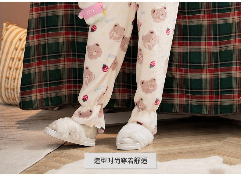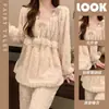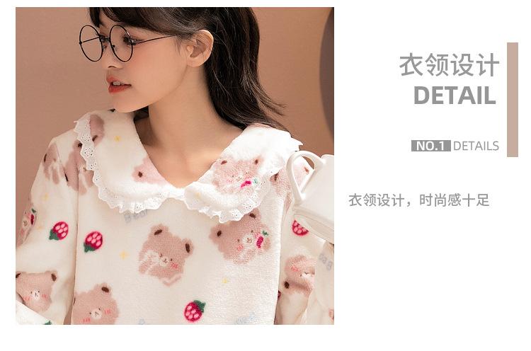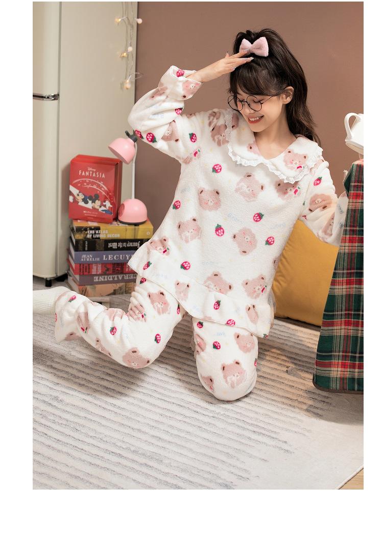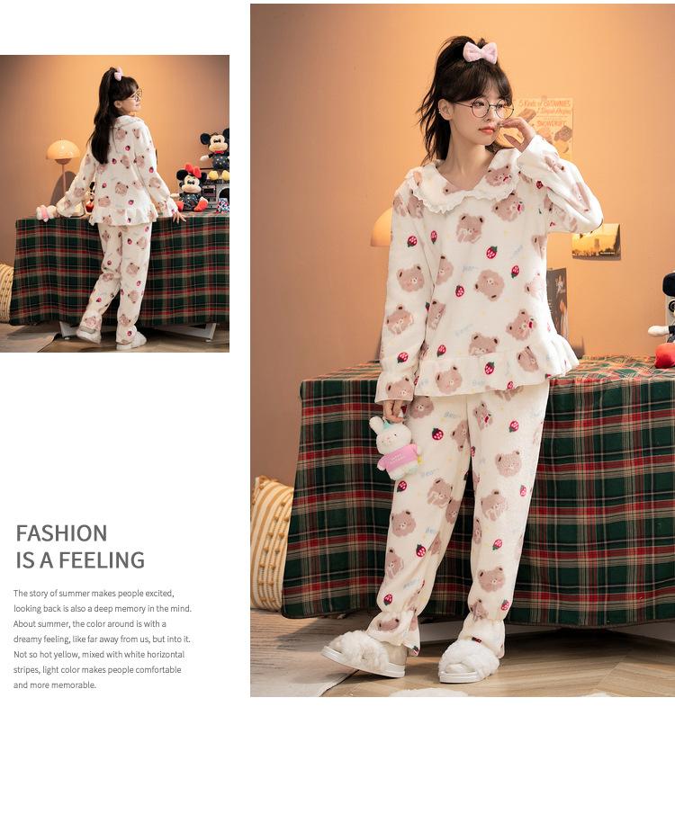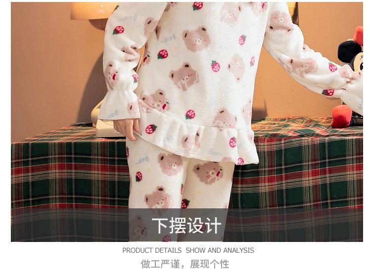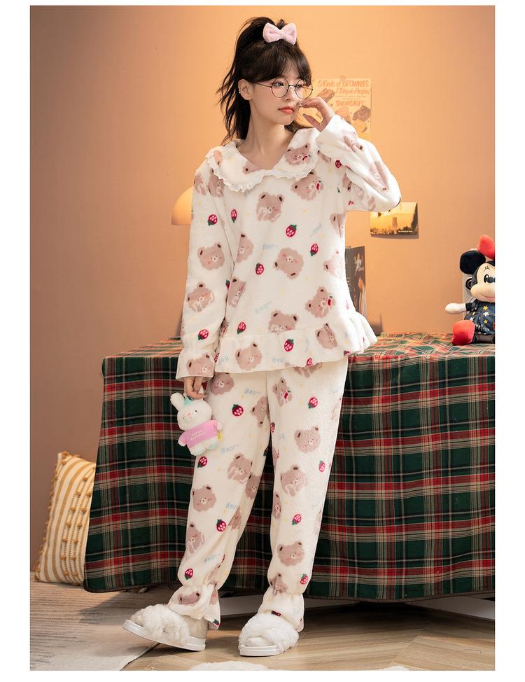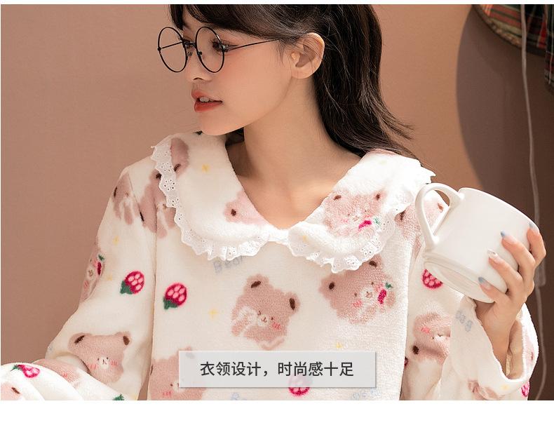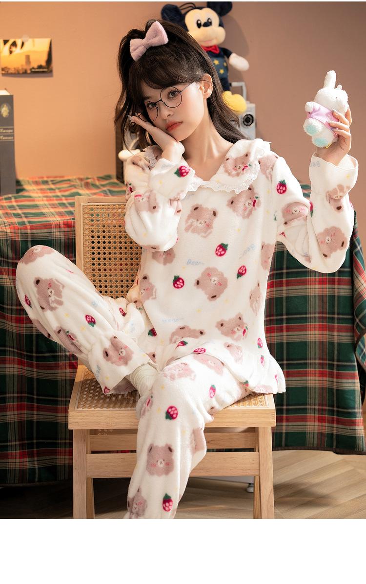 Pijama Estilo Coreano para Mulheres Veludo Coral Inverno Novo Veludo Espessado Flanela Outono e Inverno Senhoras Princesa Conjunto de Roupa de Casa