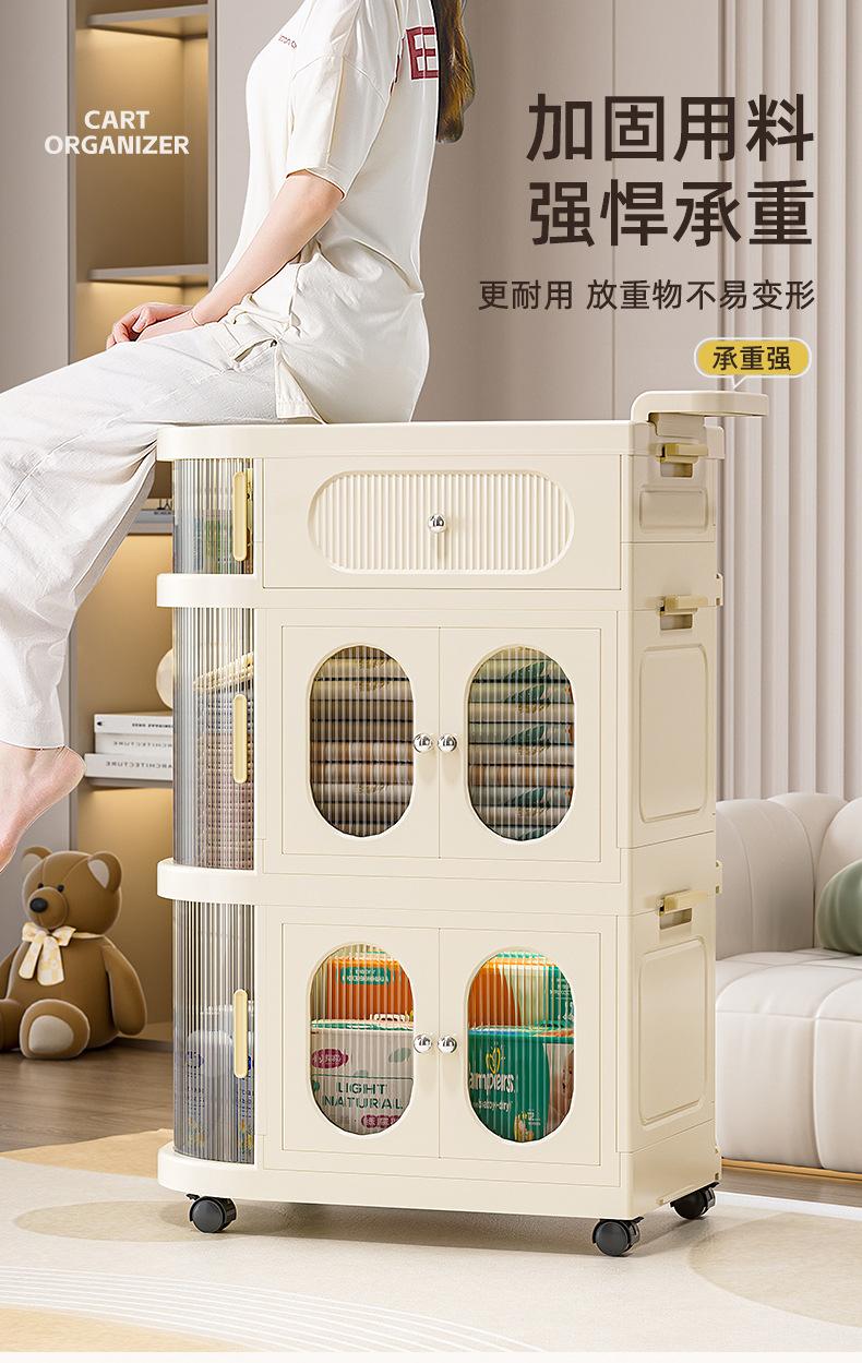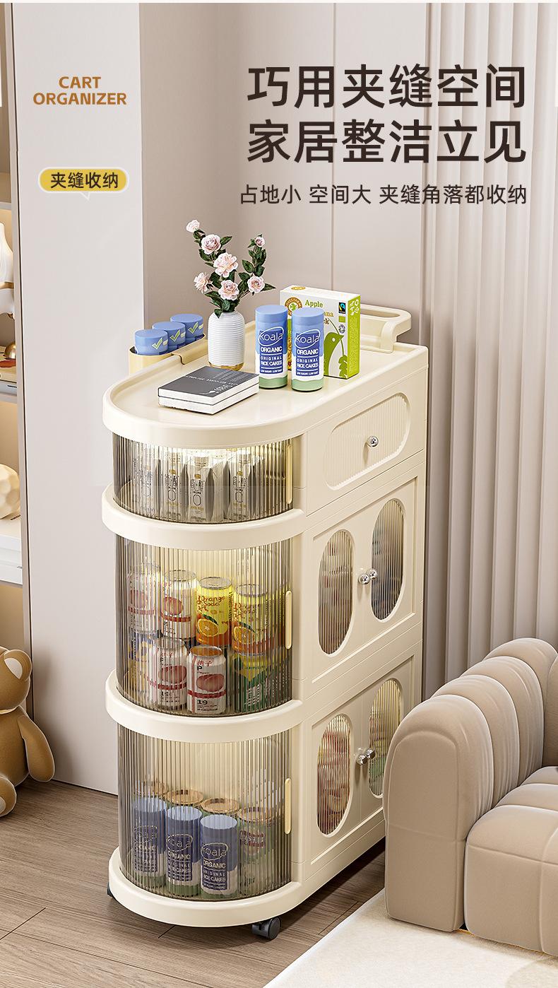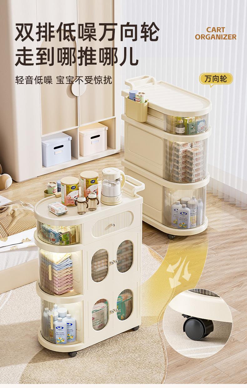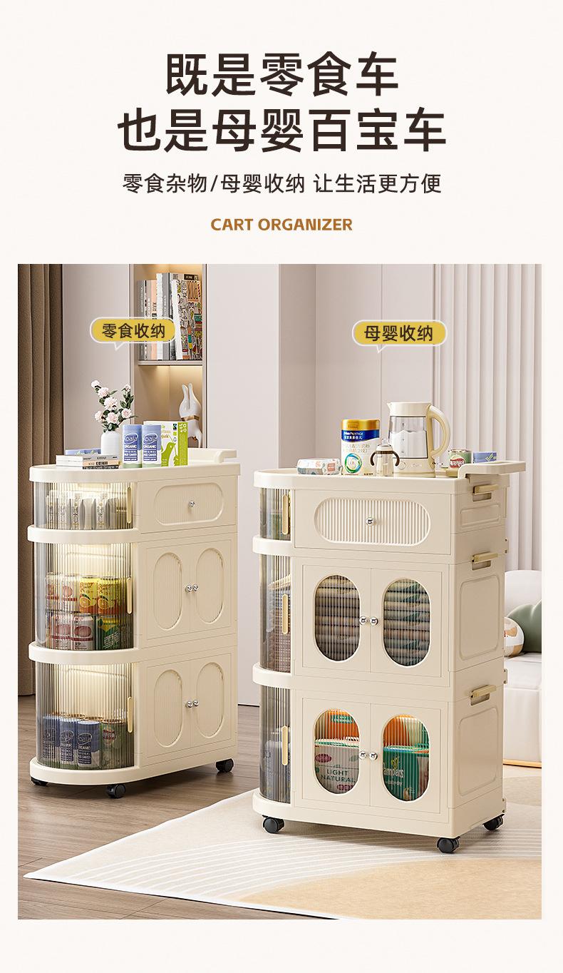 Armário pequeno de armazenamento em carrinho, prateleira de lanches multicamadas, armário para guardar brinquedos, sala de estar doméstica, rack de armazenamento móvel de chão