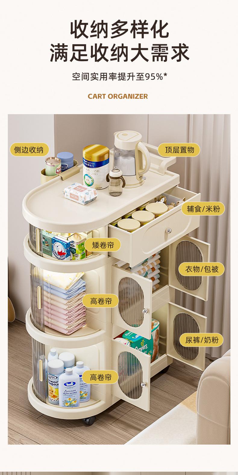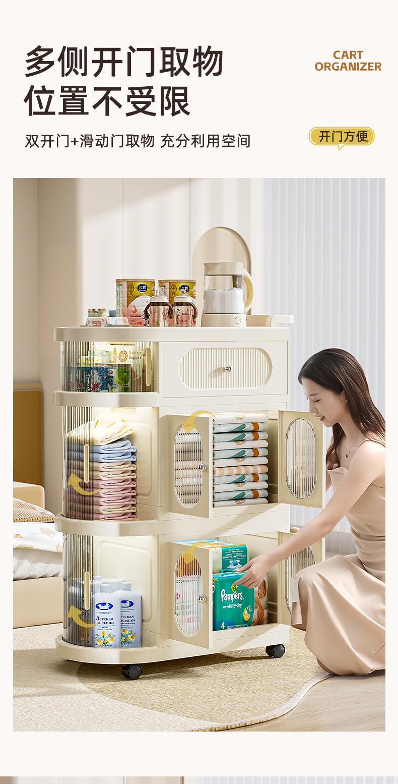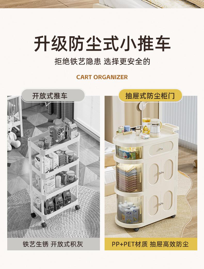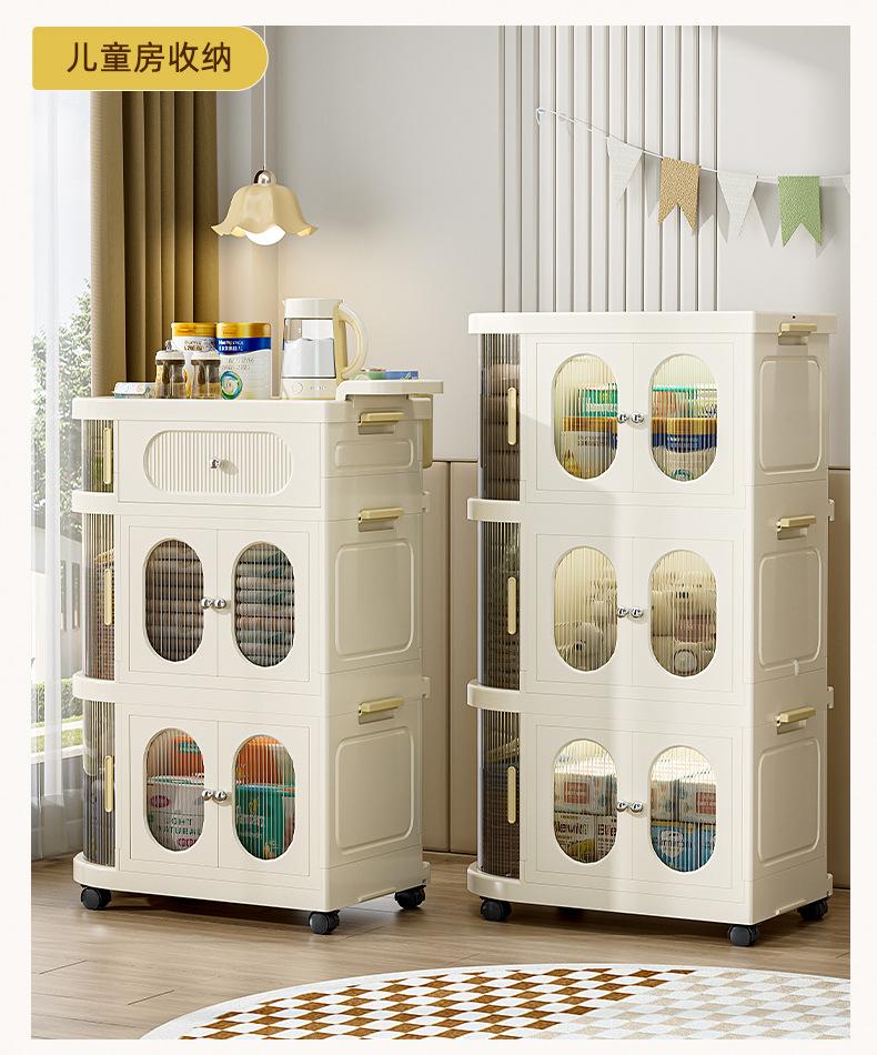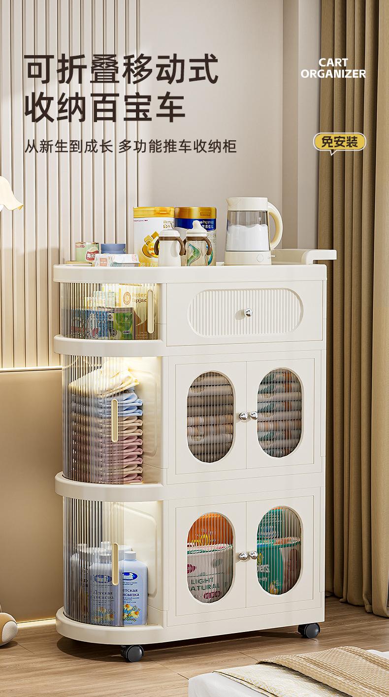 Armário pequeno de armazenamento em carrinho, prateleira de lanches multicamadas, armário para guardar brinquedos, sala de estar doméstica, rack de armazenamento móvel de chão