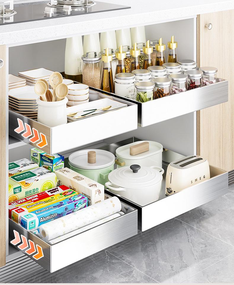 Stainless steel 43*20 single-layer pull-out box, Stainless steel 43*25 single-layer pull-out box, Stainless st...