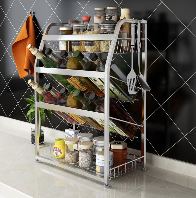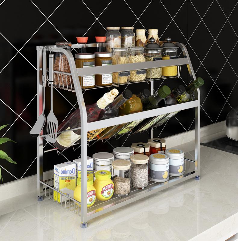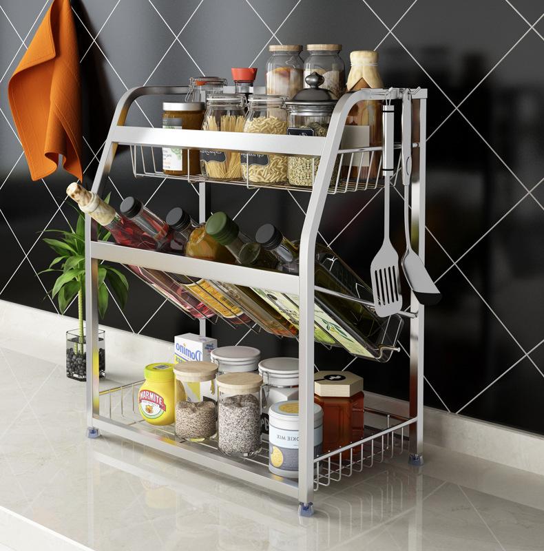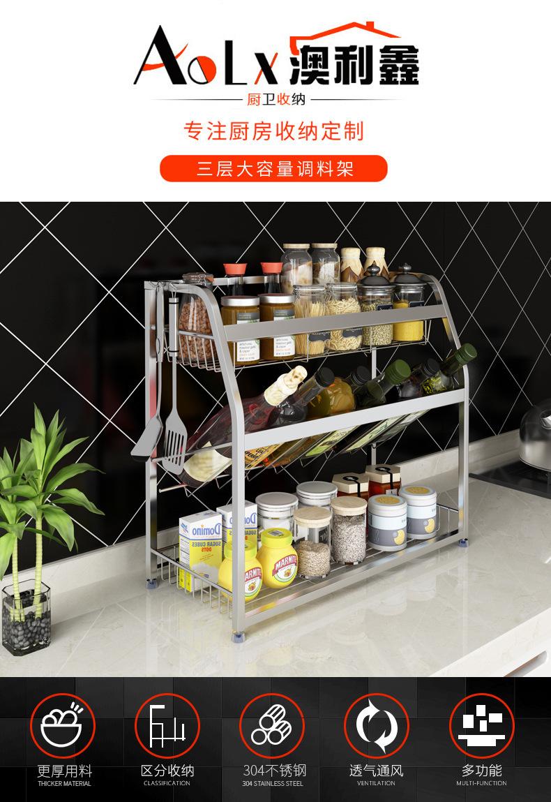 Prateleira de Armazenamento de Cozinha Aço Inoxidável 304 Utensílio Doméstico Multifuncional Tempero Prateleira de Armazenamento de Cozinha Prateleira para Temperos Armazenamento