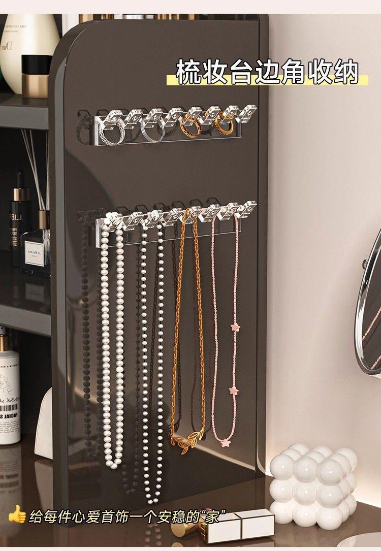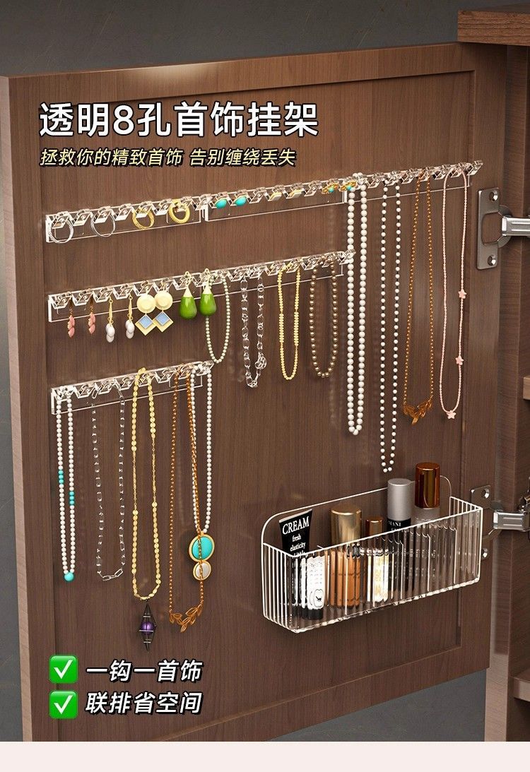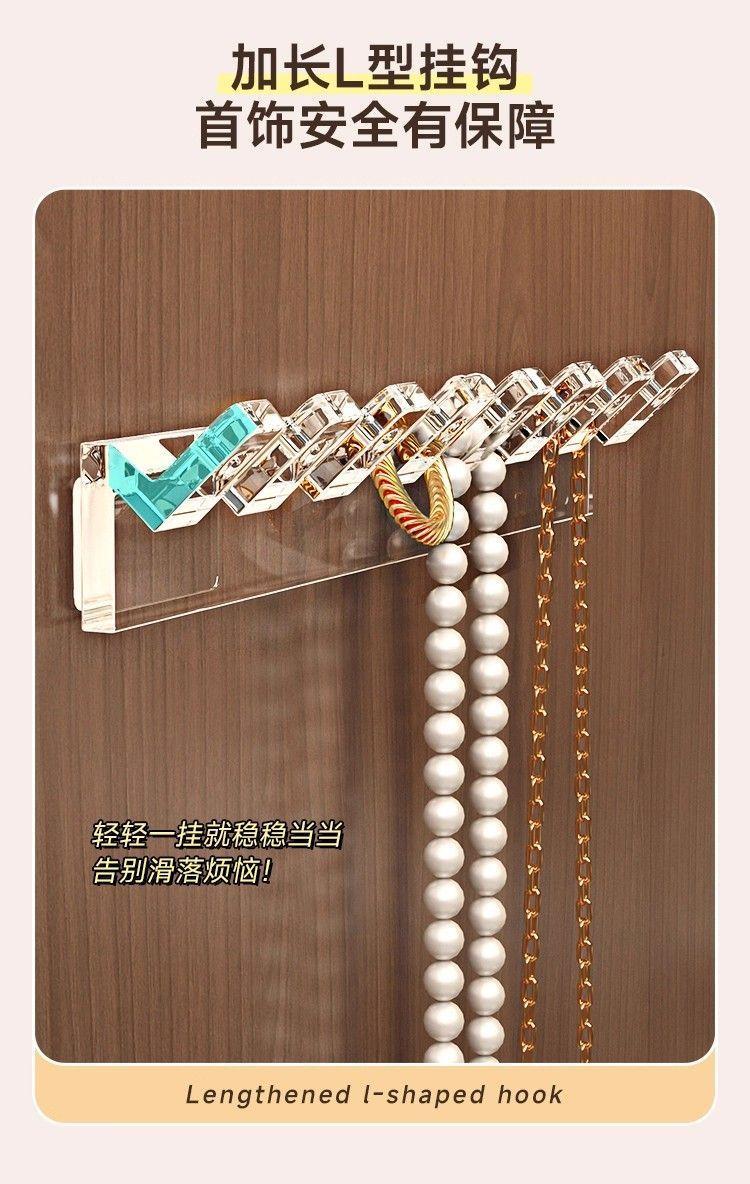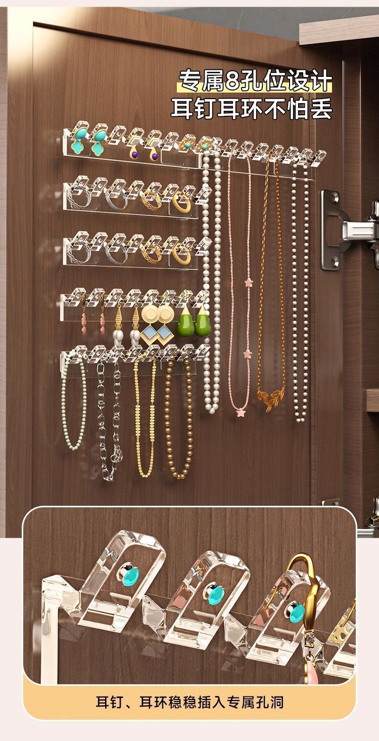 Porta de Armário com Espelho Verso Armazenamento de Colares Rack para Pendurar Pulseira Brinco Fileira de Ganchos Anti-Embaraço Montado na Parede Suporte de Exibição de Joias