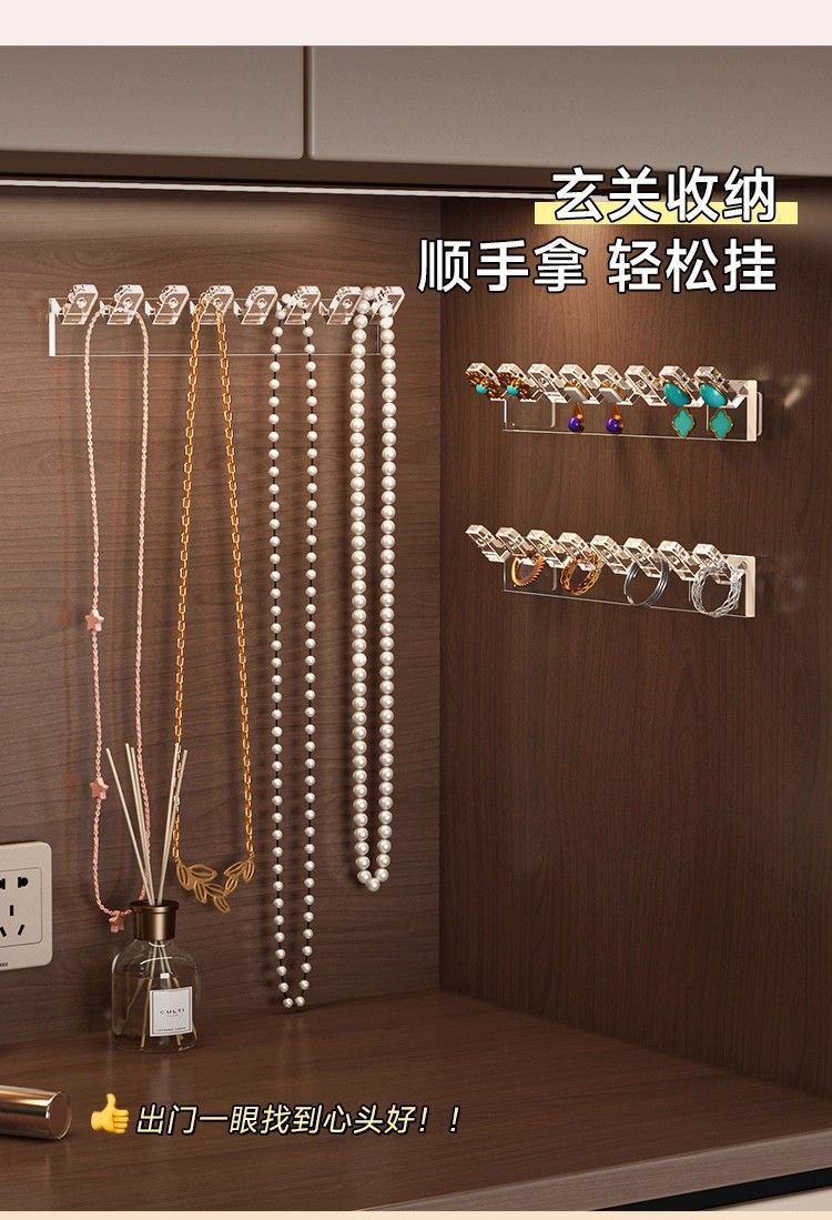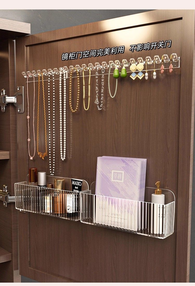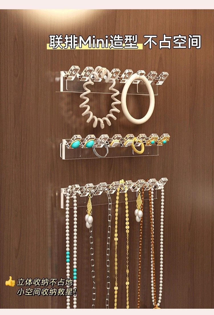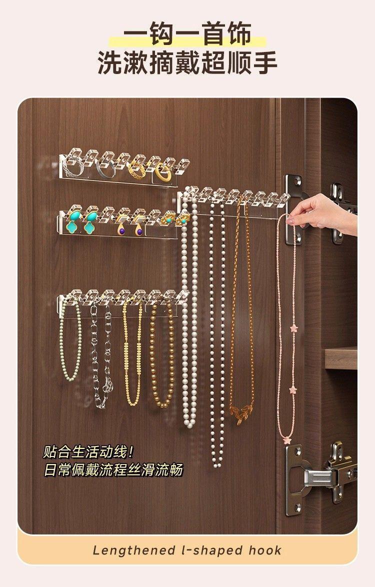 Porta de Armário com Espelho Verso Armazenamento de Colares Rack para Pendurar Pulseira Brinco Fileira de Ganchos Anti-Embaraço Montado na Parede Suporte de Exibição de Joias