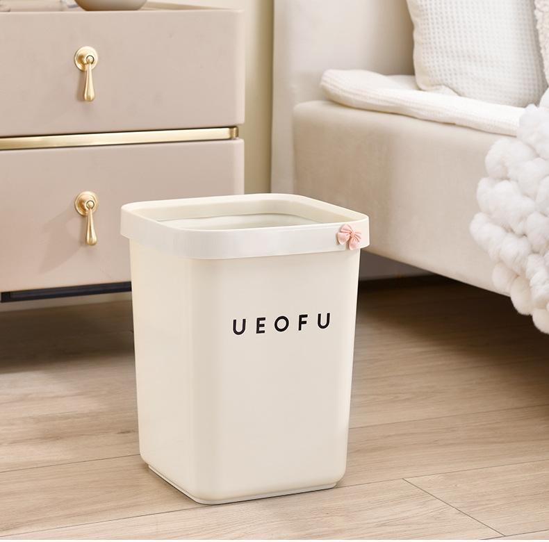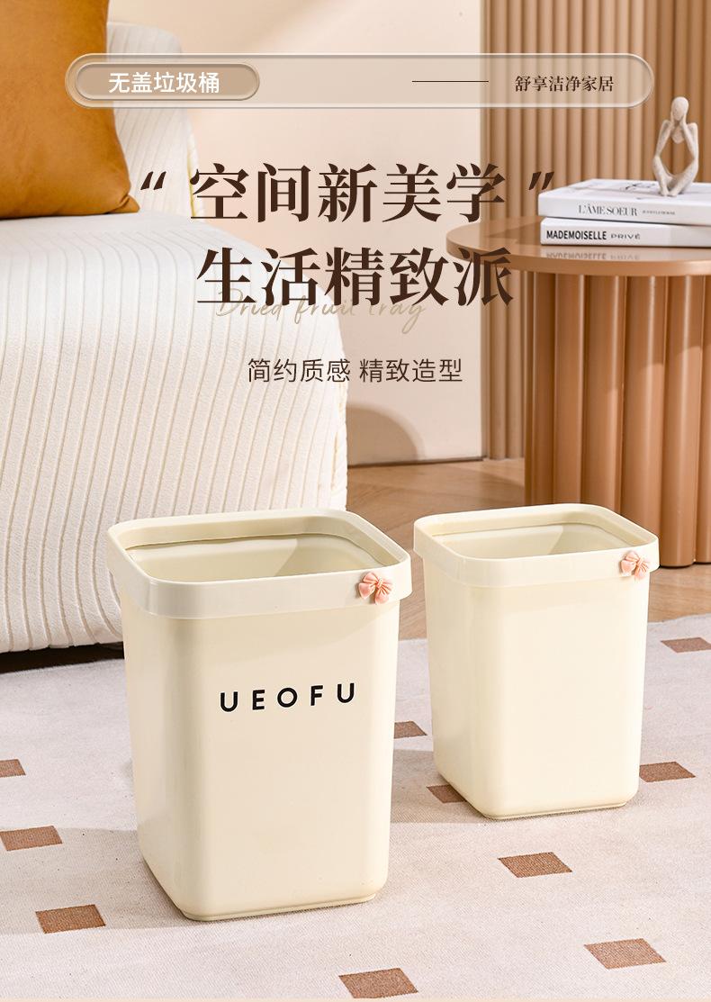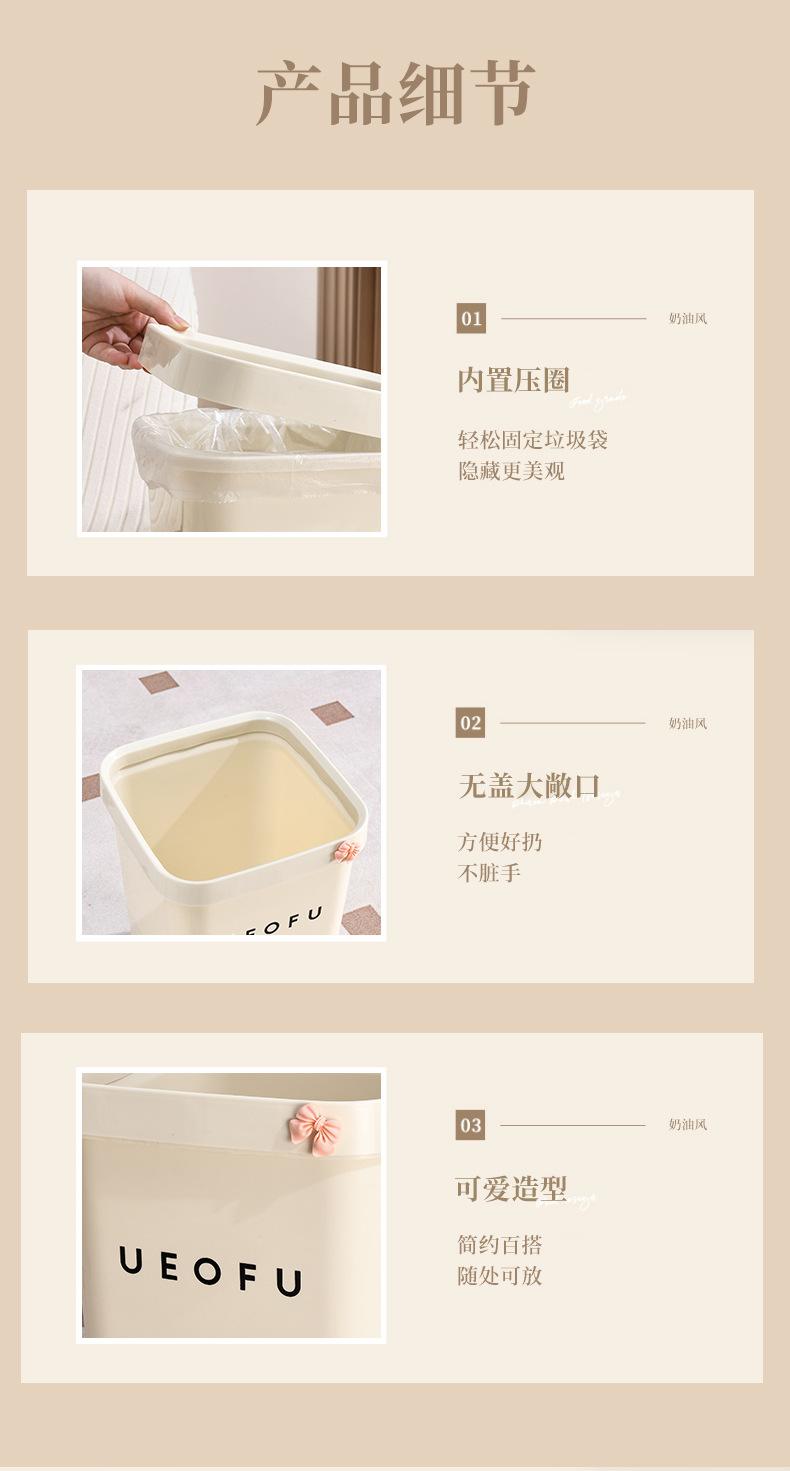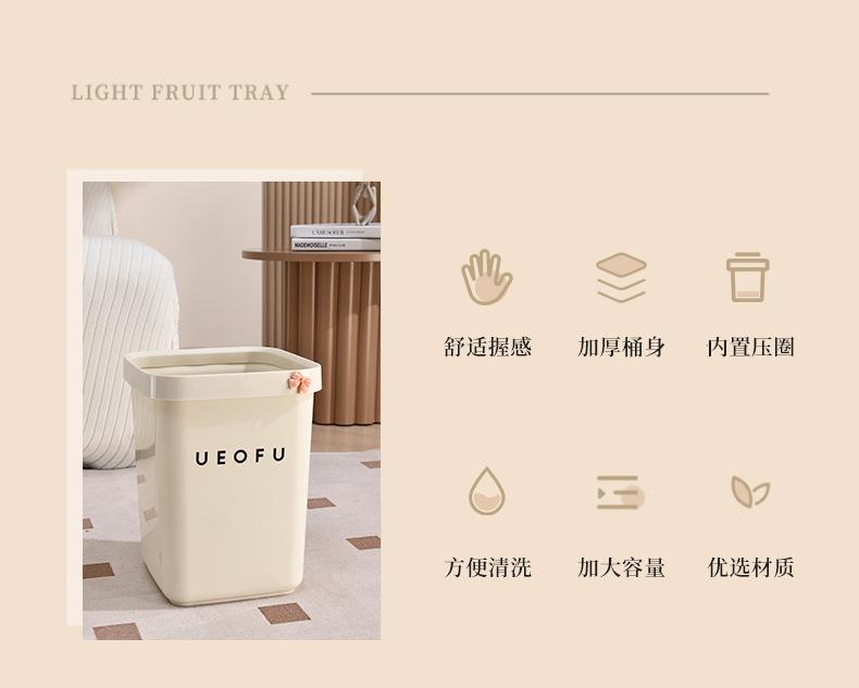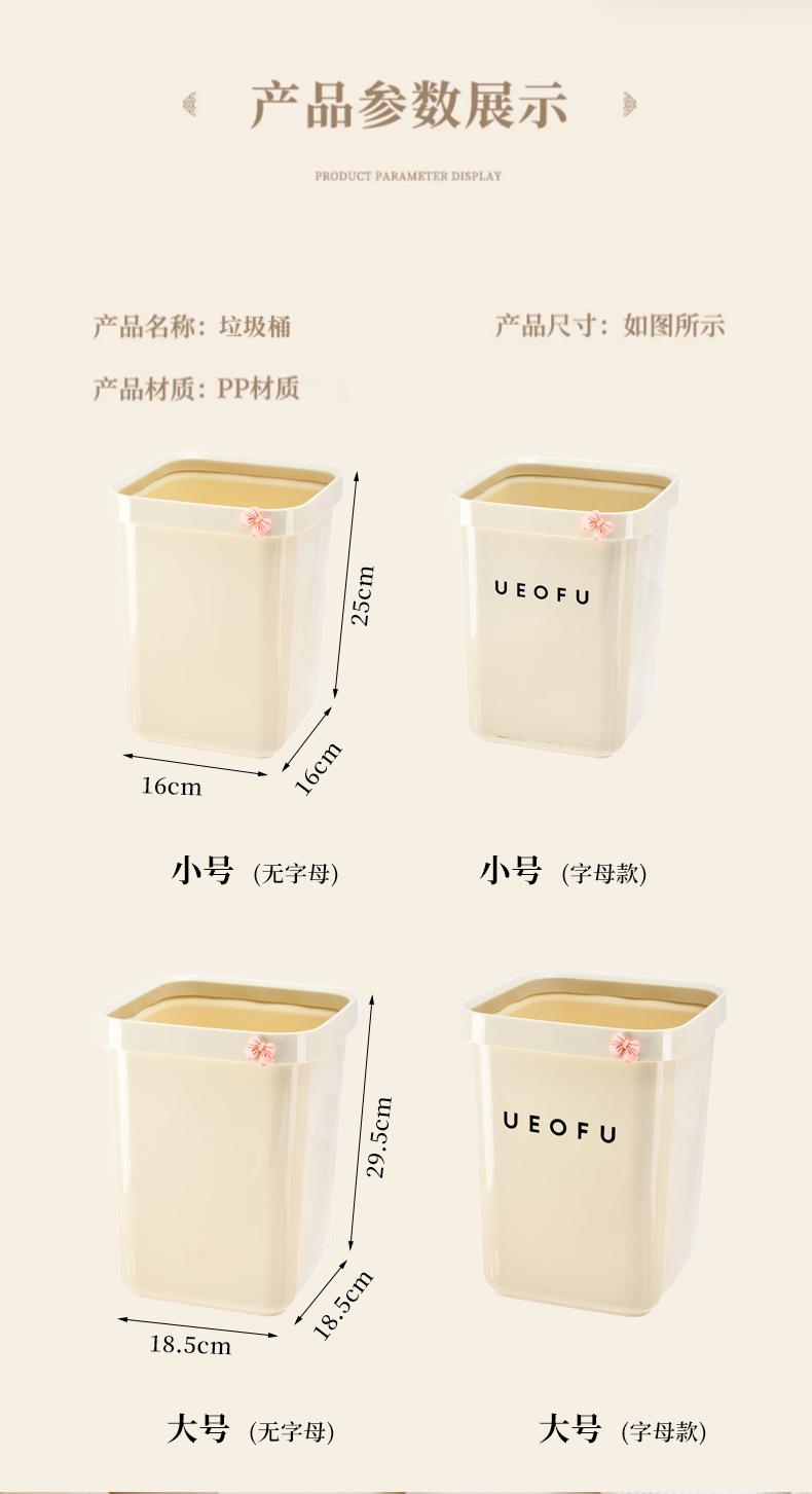 Lixeira simples doméstica de alto valor doméstico tamanho grande sala de estar banheiro estilo creme lixeira sem tampa com anel de pressão