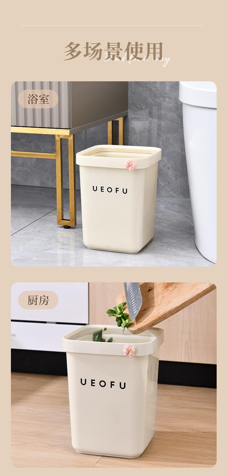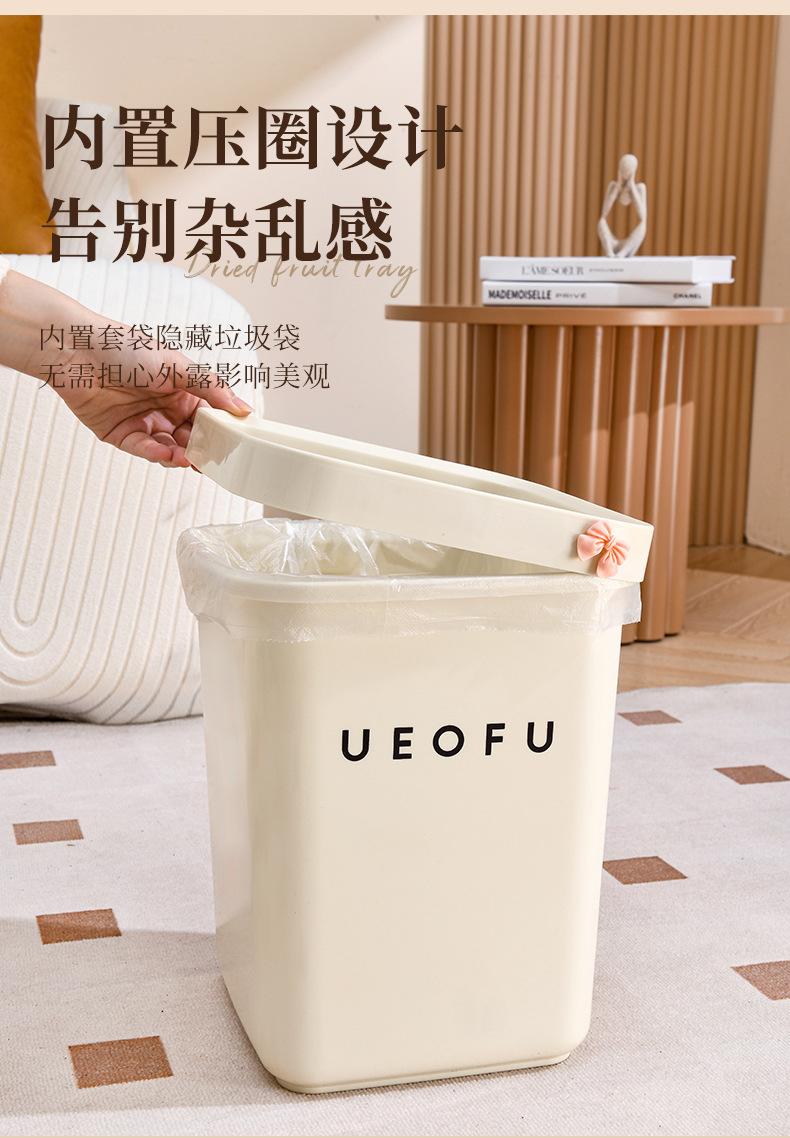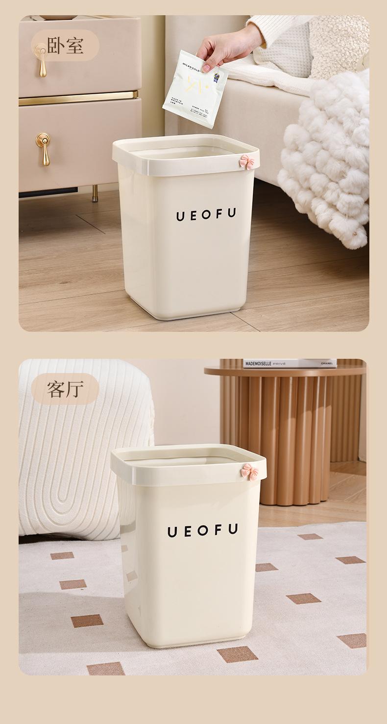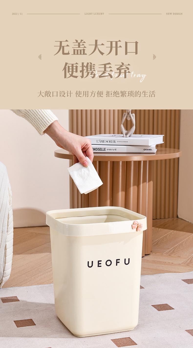 Lixeira simples doméstica de alto valor doméstico tamanho grande sala de estar banheiro estilo creme lixeira sem tampa com anel de pressão
