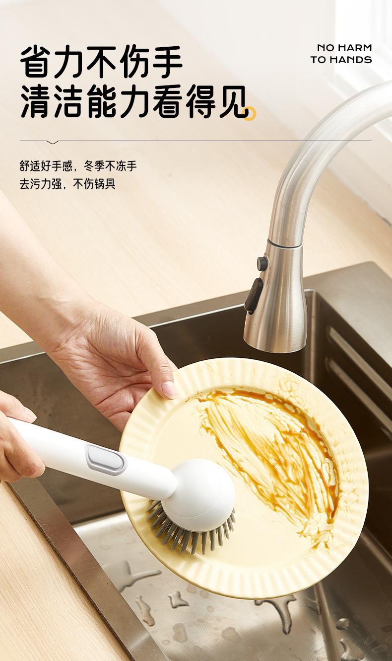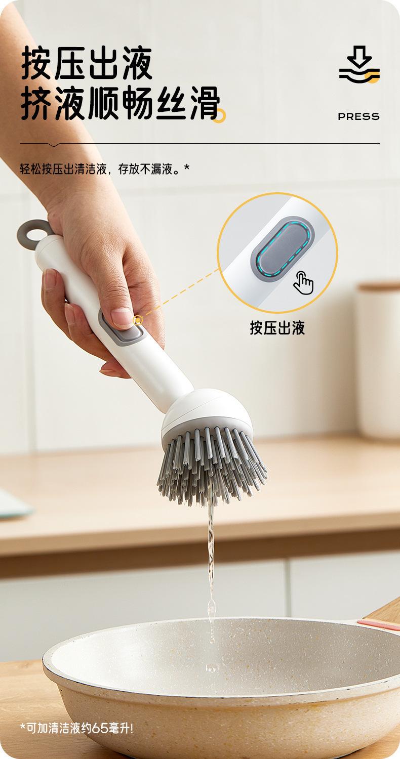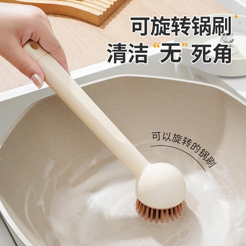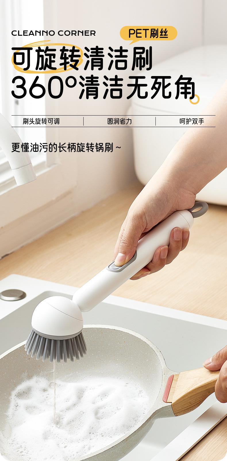 Compre Escova Giratória para Panela com Cabo Longo e Adição de Líquido Escova para Lavar Panelas de Cozinha Panela Antiaderente para Óleo Escova de Limpeza Multifuncional Doméstica Cinza Verde no atacado no Joom.pro