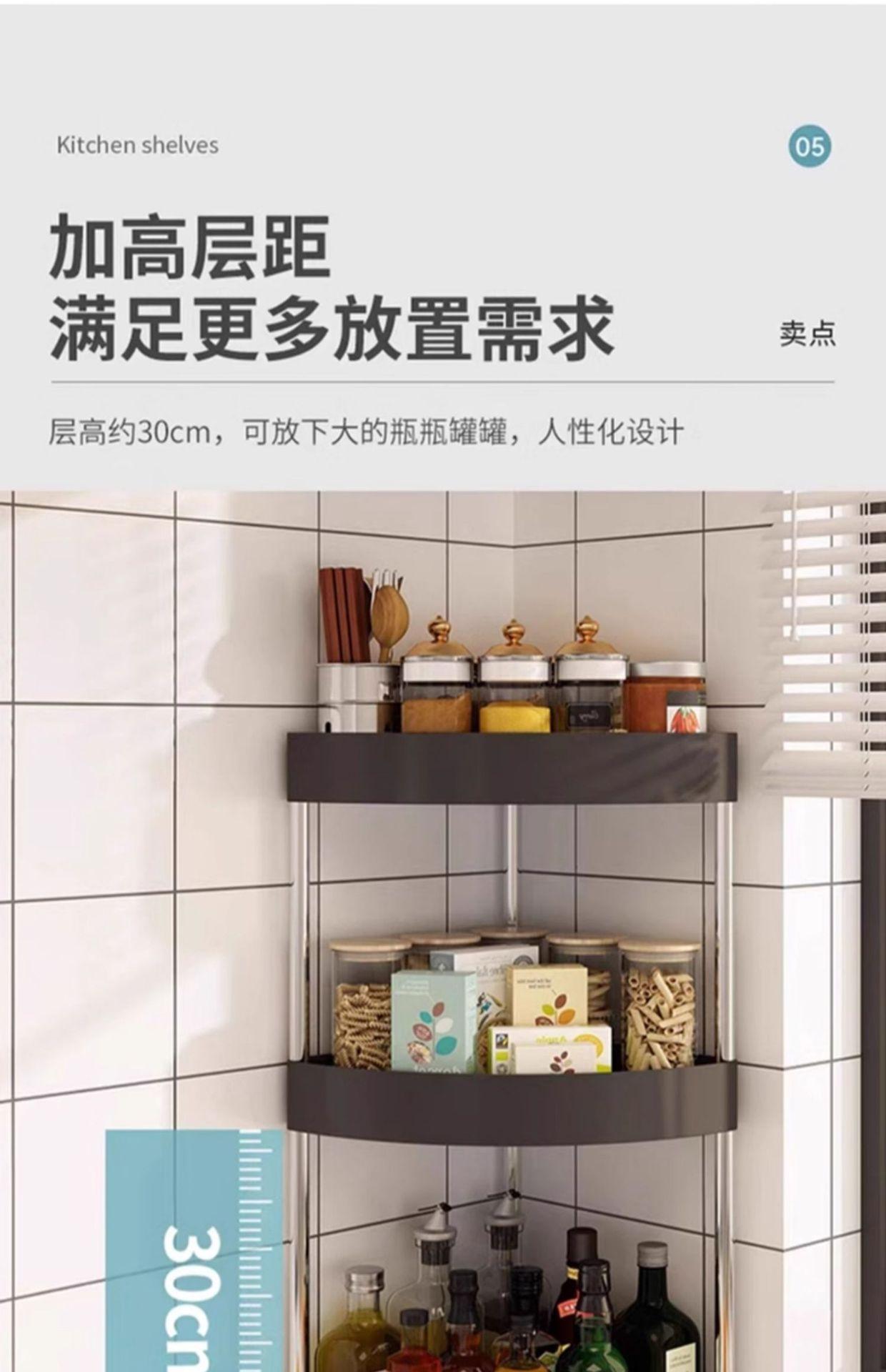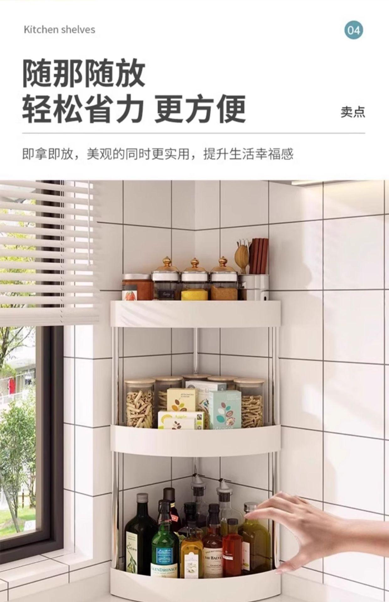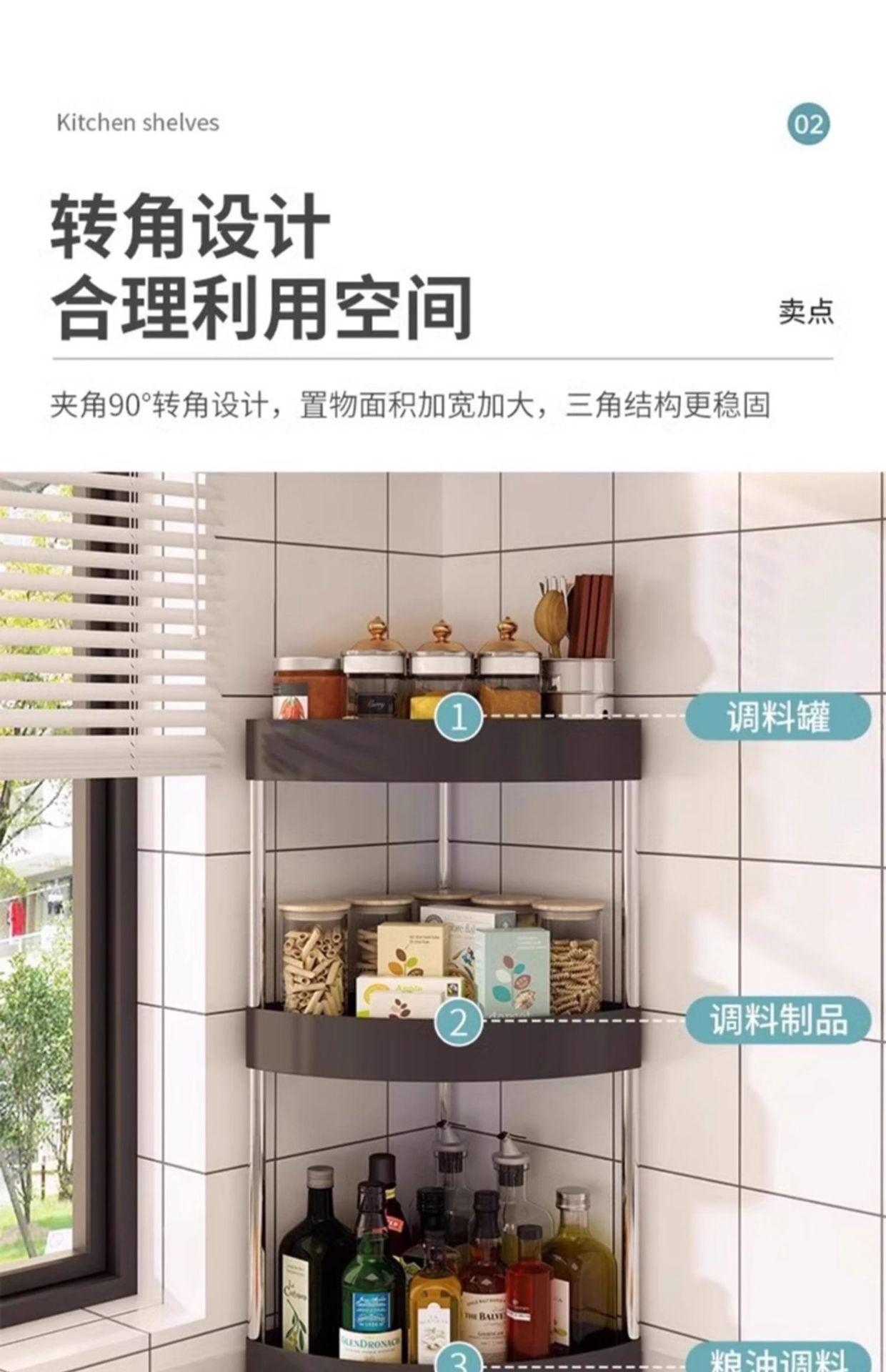 Compre Rack de Armazenamento de Cozinha Porta-Temperos Rack de Canto Suprimentos para Tempero Parede Canto Chão Organizador no atacado no Joom.pro