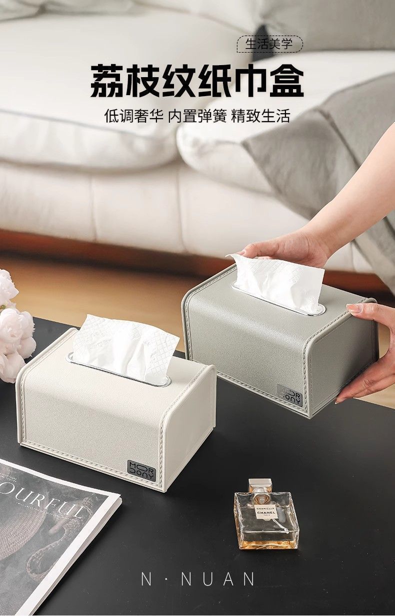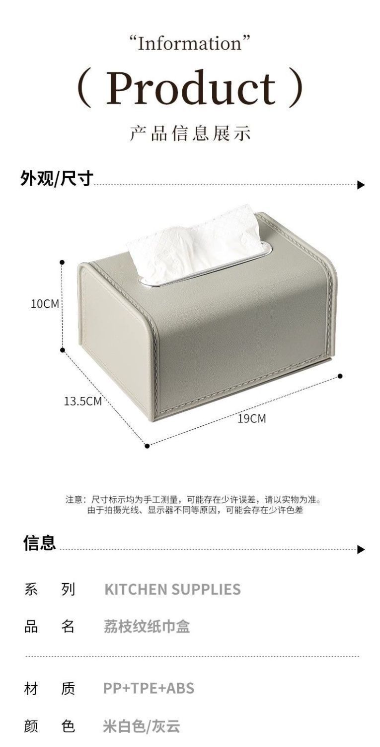 Creamy White-Litchi Pattern Tissue Box, Starry Grey-Litchi Pattern Tissue Box, Creamy White-Litchi Pattern Tis...