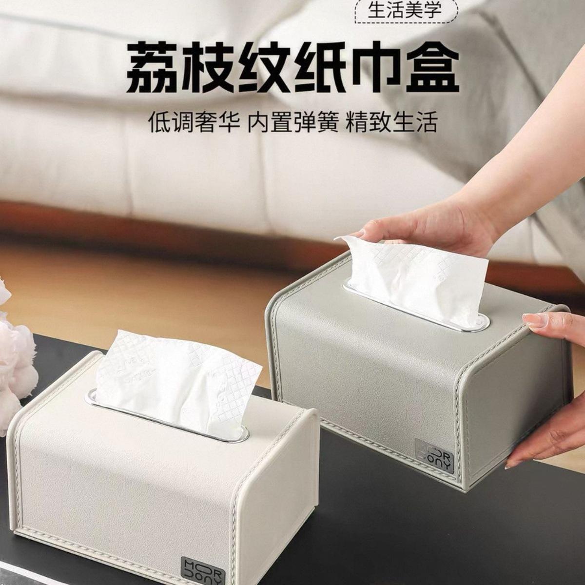 Porta Lenços Sala de Estar Mesa de Centro Luxo Leve Textura Couro Sintético Caixa de Papel Toalha com Mola para Armazenamento Caixa de Guardanapos de Mesa