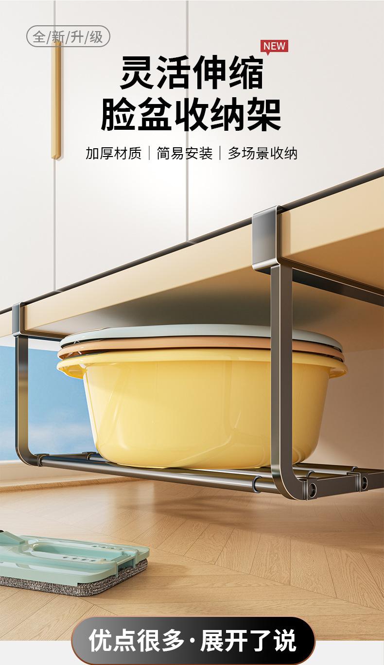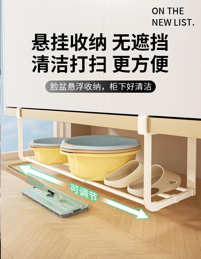Suporte de Armazenamento para Lavatório Suspenso Bacia Armário de Banheiro Camada Inferior Prateleira de Banheiro Telescópica Suspensa Sem Furos Artefato para Bacia Suspensa