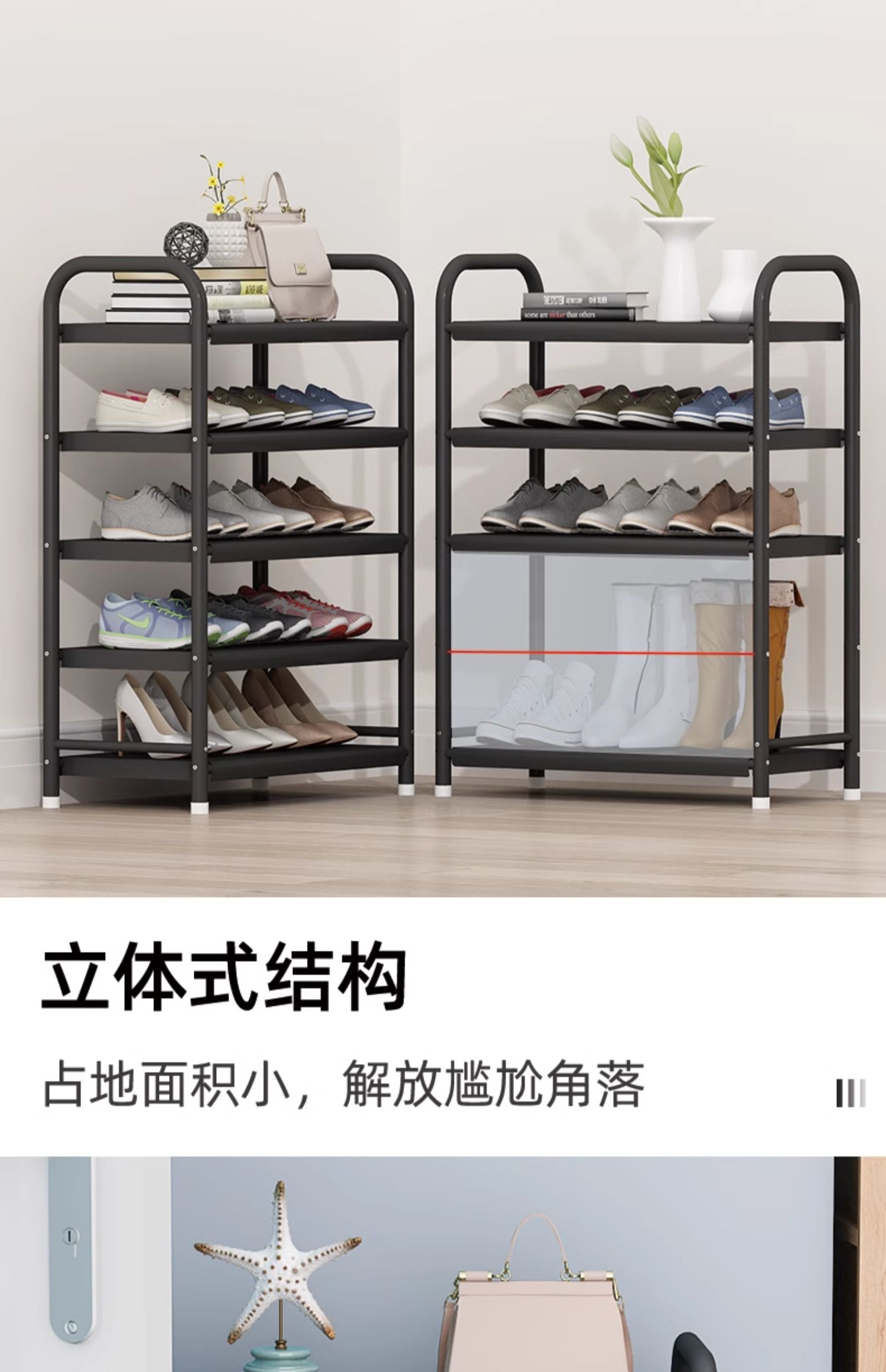 Two-layer 50 long - [Obsidian Black] all-metal shelves, Most people buy six-layer 60 long - [Stalactite White]...