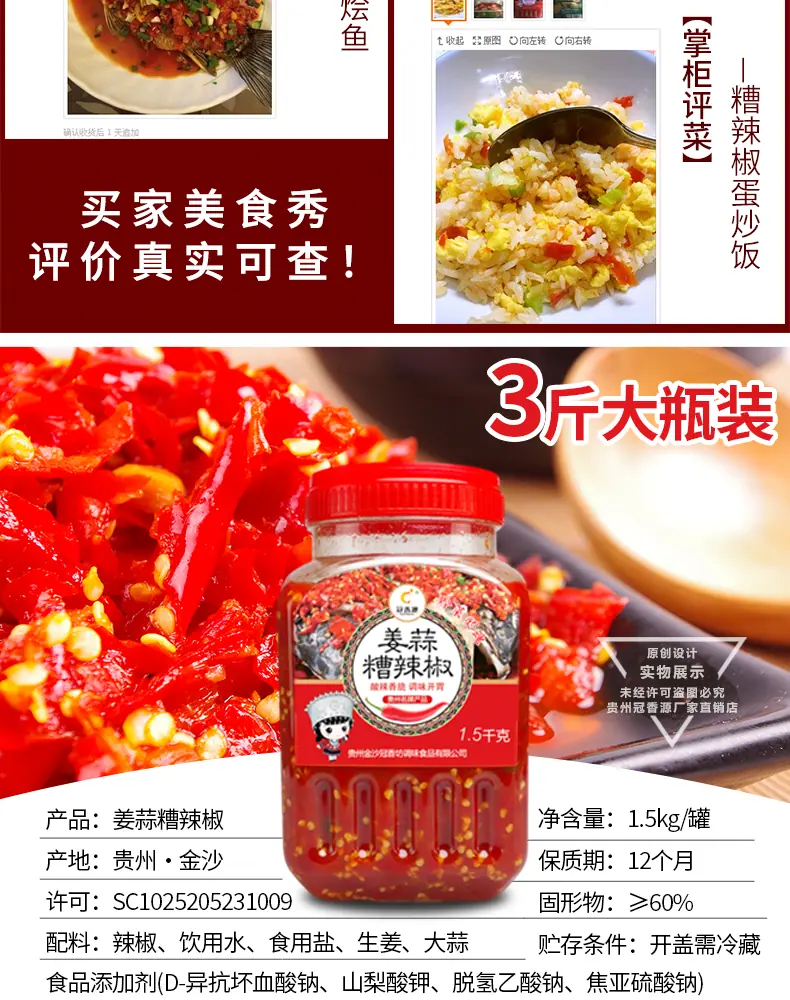 Especialidade de Guizhou Gengibre Alho Zaojiao 3 Jin Molho de Pimenta Picada para Cabeça de Peixe ao Vapor Pimenta em Conserva Tempero Caseiro de Fazenda
