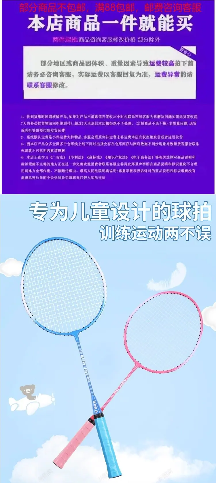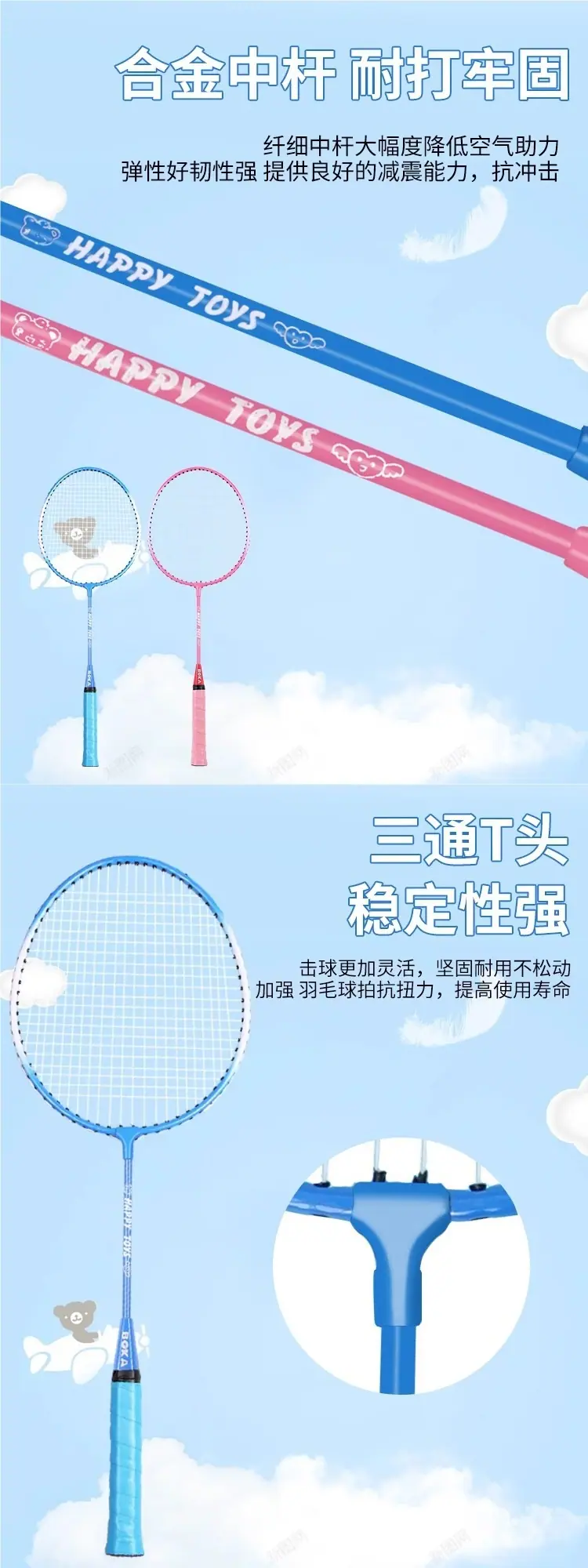 Raquete de Badminton Infantil Anti-Impacto 3-12 Anos Raquete Dupla Novo Conjunto Raquete Simples Dupla