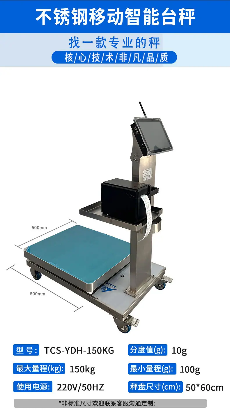 Balança Digital de Bancada Comercial de Alta Precisão em Aço Inoxidável 150kg Balança de Bancada Inteligente para Pesagem de Produtos Aquáticos no Varejo com Impressão de Etiquetas