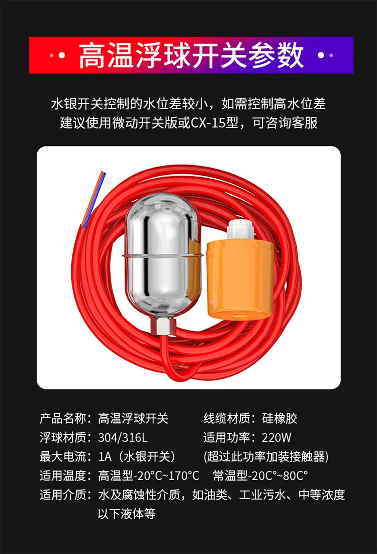 Controlador de Nível de Água com Chave de Boia Bomba de Água de Torre d'Água Mercúrio Aço Inoxidável 304 Alta Temperatura Chave de Nível de Líquido Totalmente Automático