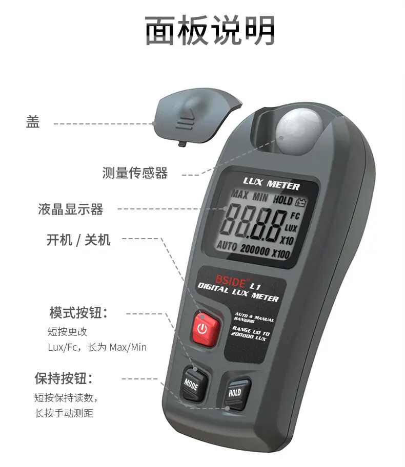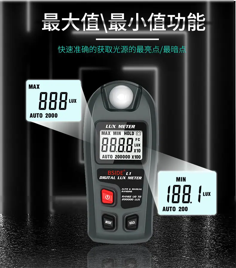 Medidor de Iluminância Digital Testador de Iluminância de Luz L1 Medidor de Luz de Alta Precisão Luxímetro Detector de Brilho Lúmen