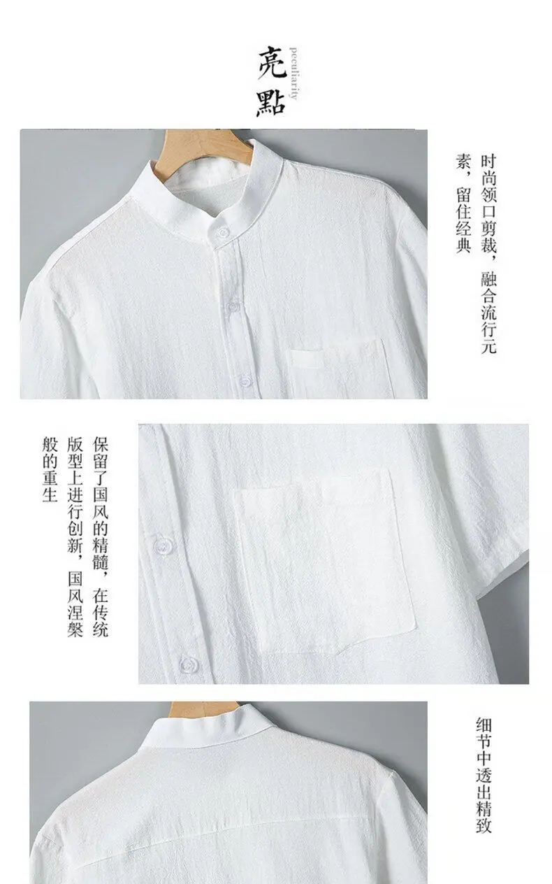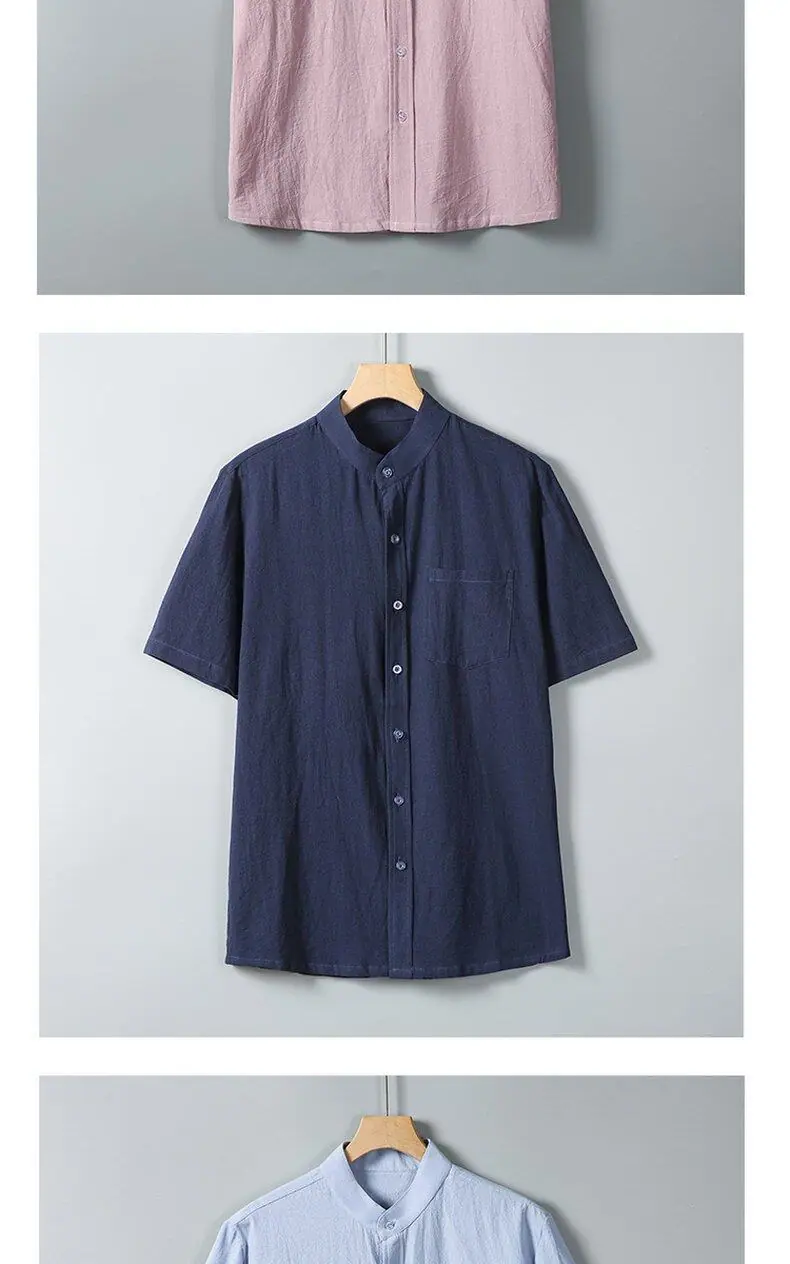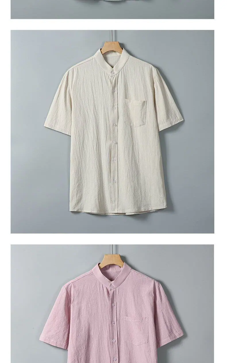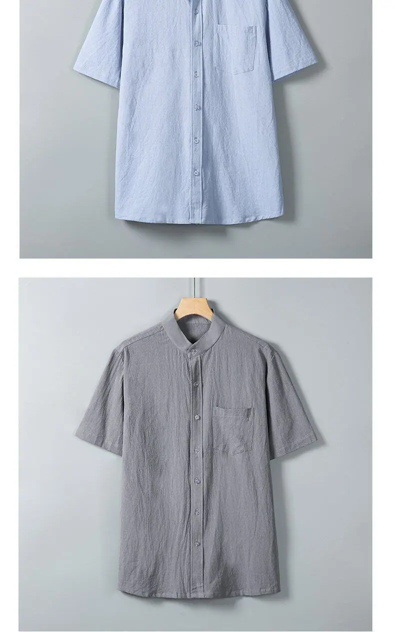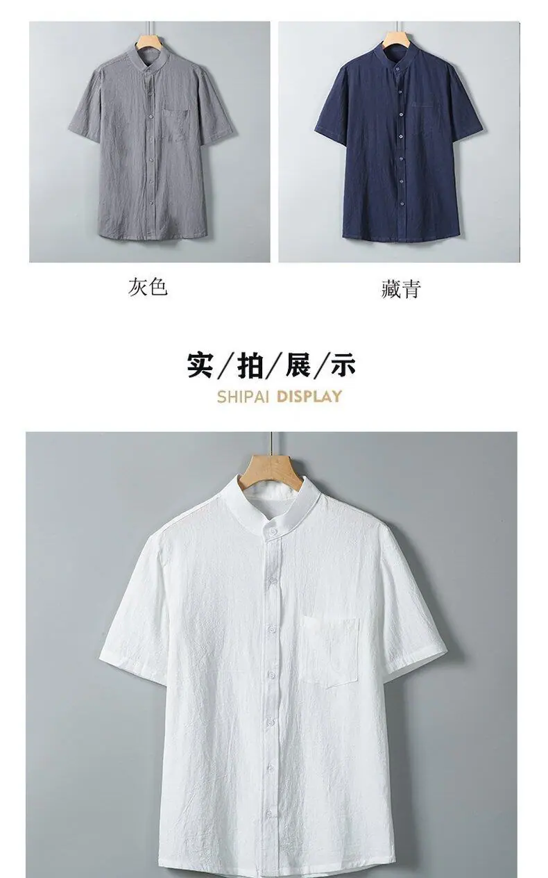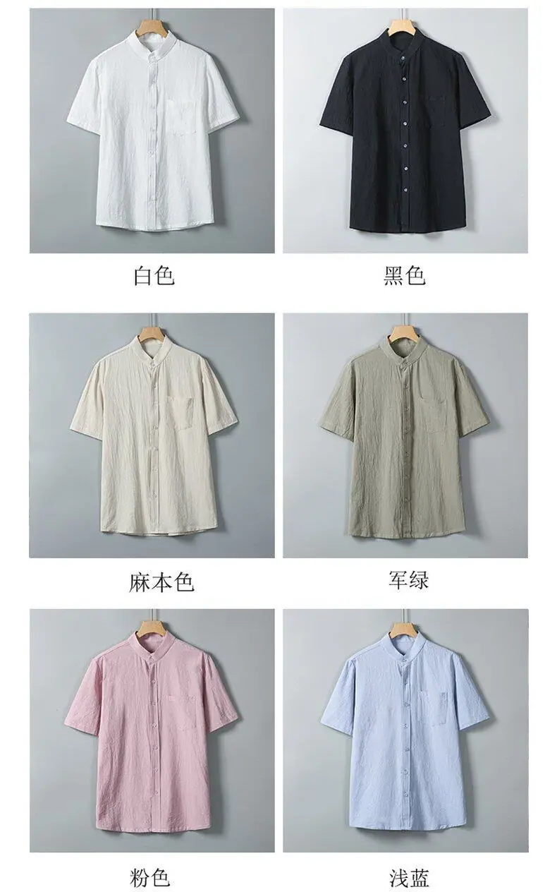 Compre Camisa Masculina Nova 2025 de Manga Curta com Gola Alta Cor Pura Simples Solta Tamanho Grande Respirável Casual Tops Masculinos no atacado no Joom.pro