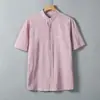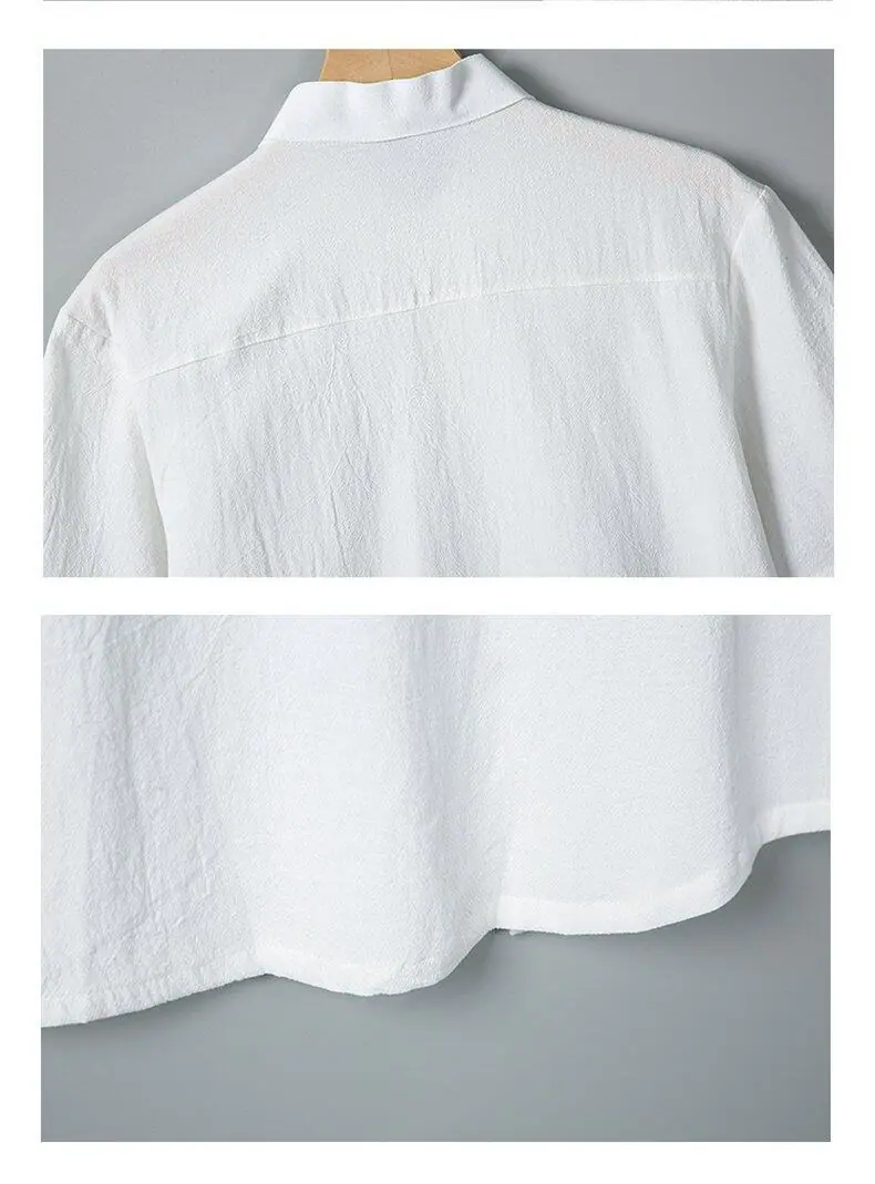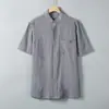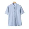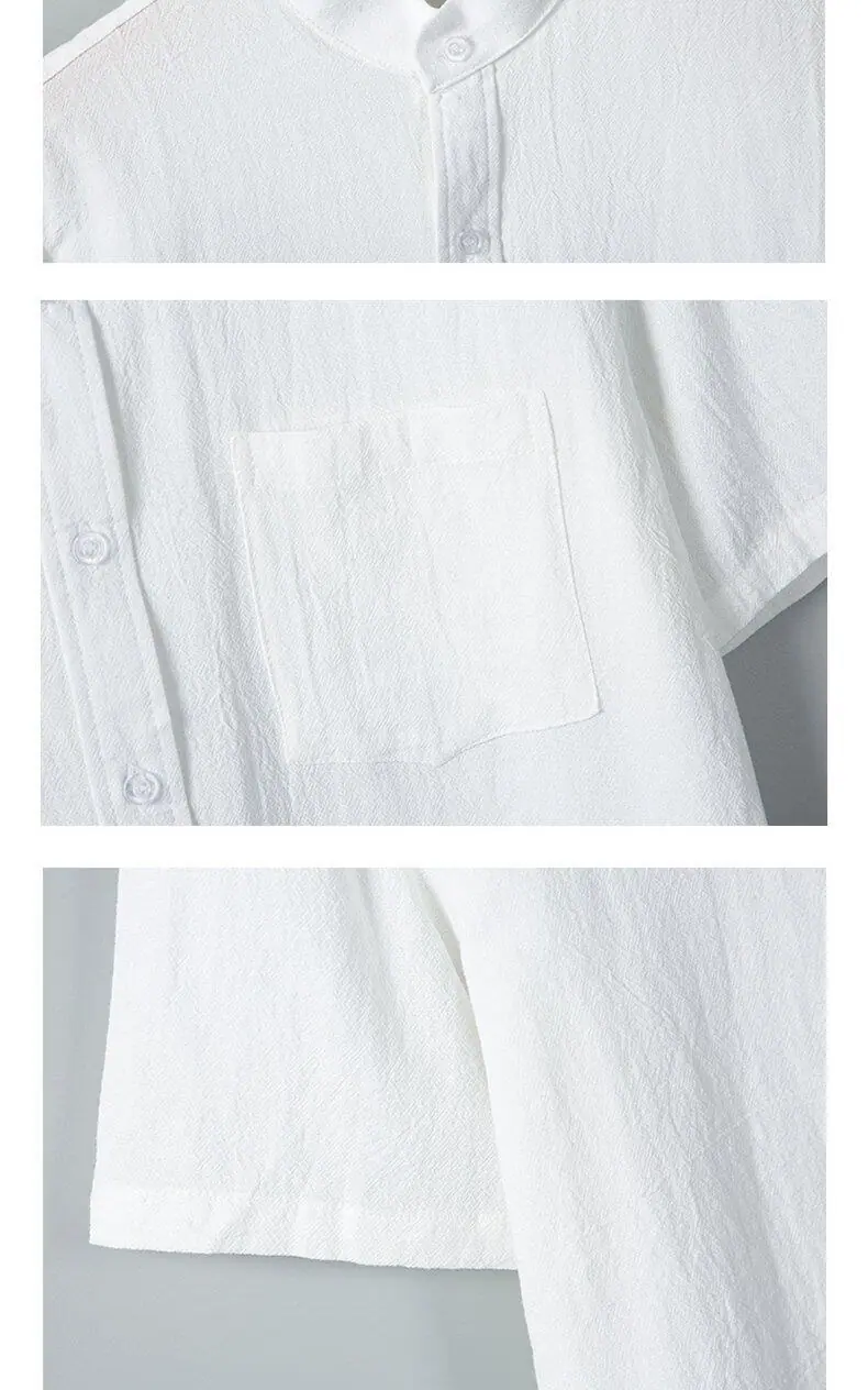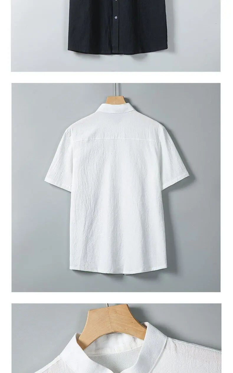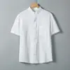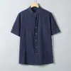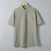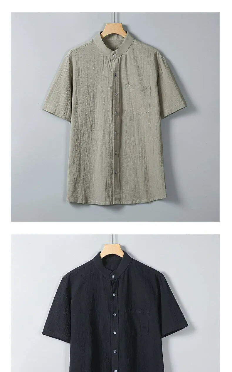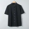 Camisa Masculina Nova 2025 de Manga Curta com Gola Alta Cor Pura Simples Solta Tamanho Grande Respirável Casual Tops Masculinos