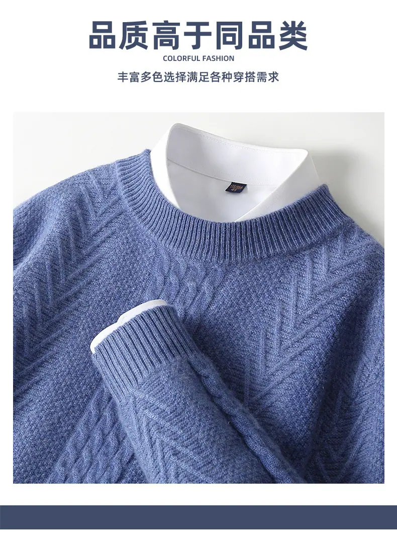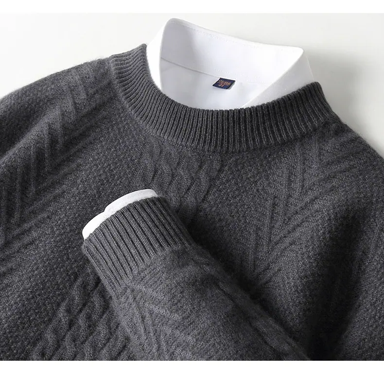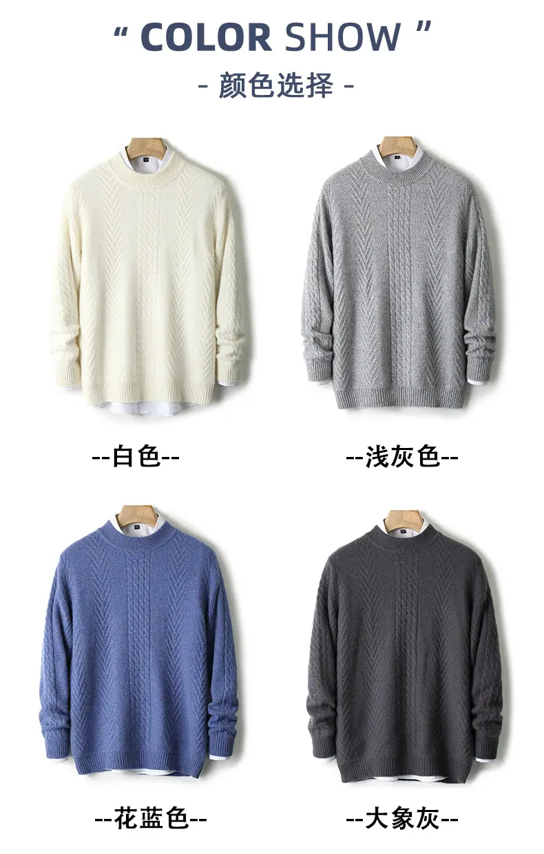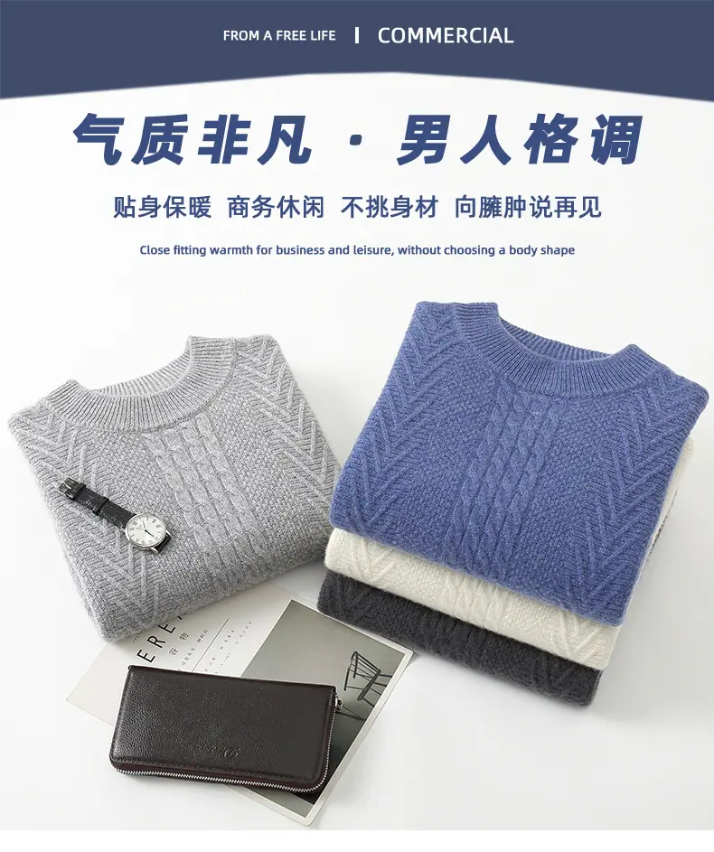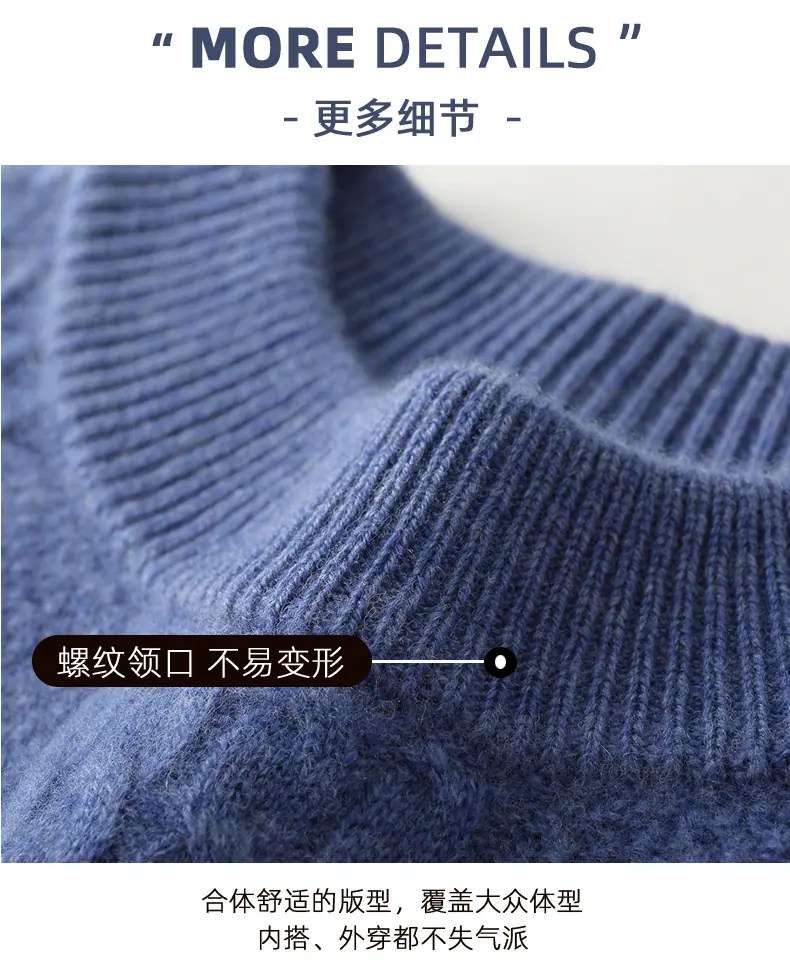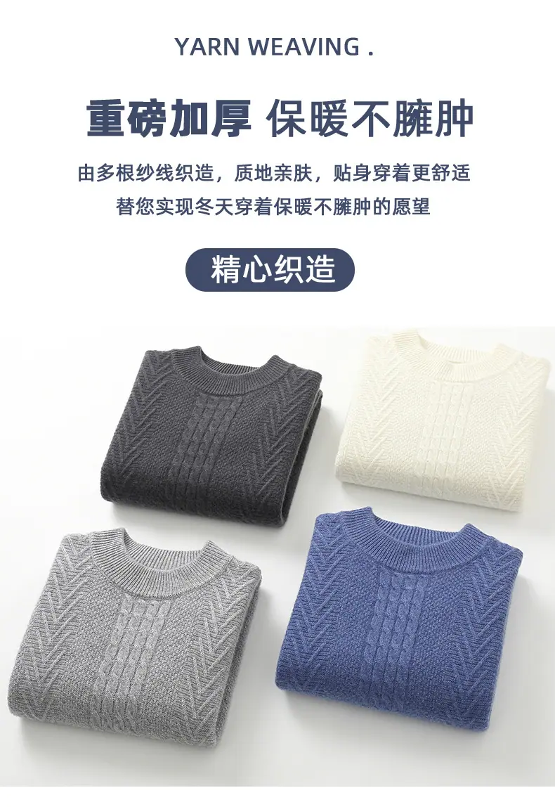 Novo Suéter de Lã Masculino de Outono e Inverno Gola Redonda Espessado Manga Longa Solto Suéter Pulôver Casual Tricotado Base Suéter de Caxemira