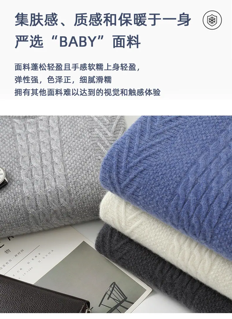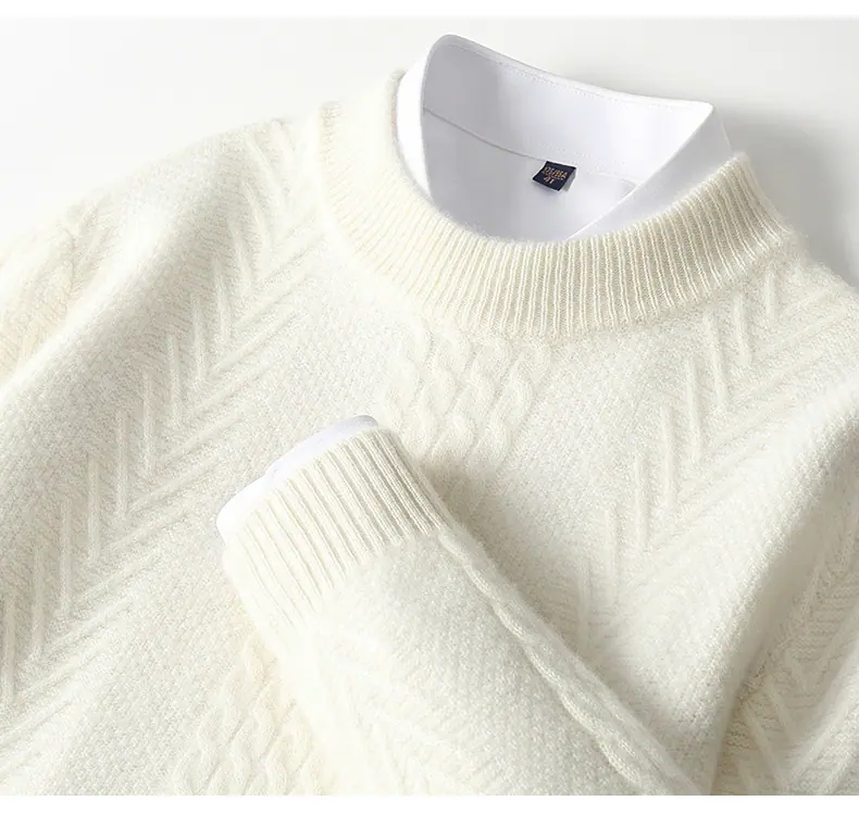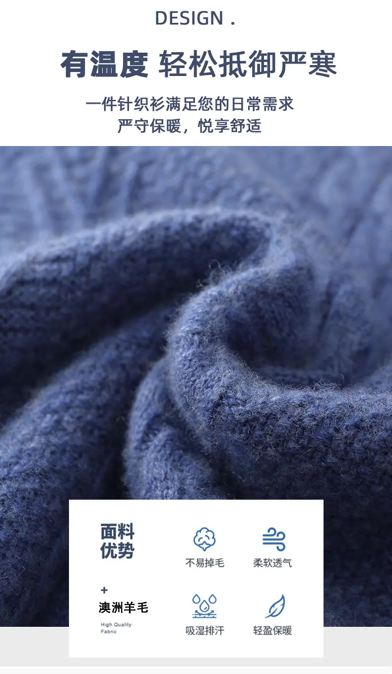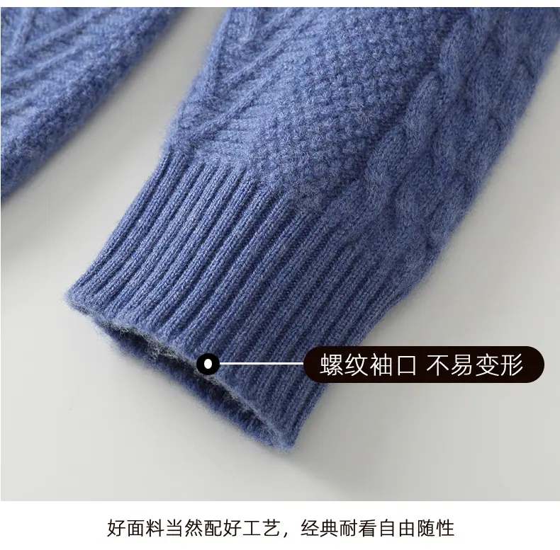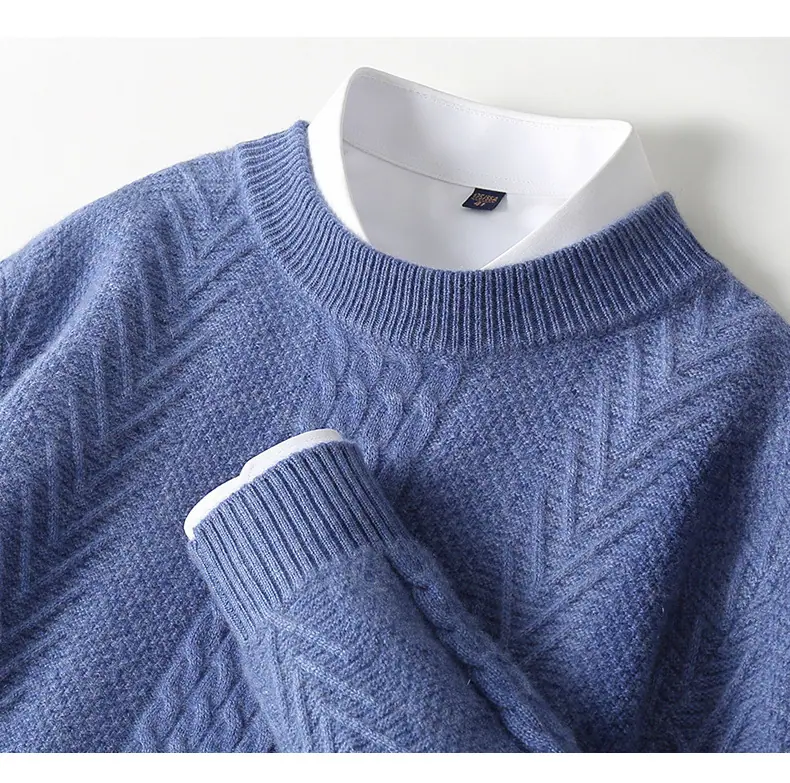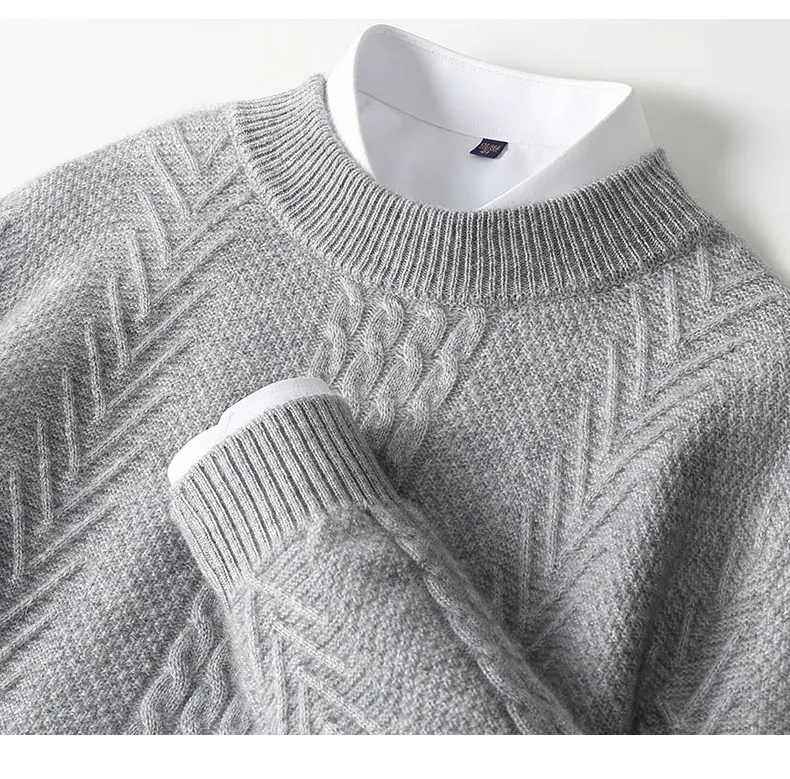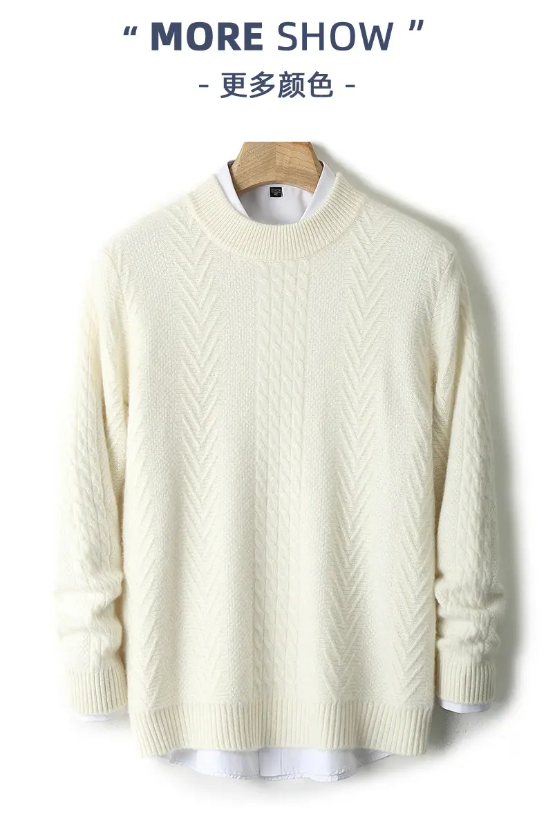 Novo Suéter de Lã Masculino de Outono e Inverno Gola Redonda Espessado Manga Longa Solto Suéter Pulôver Casual Tricotado Base Suéter de Caxemira