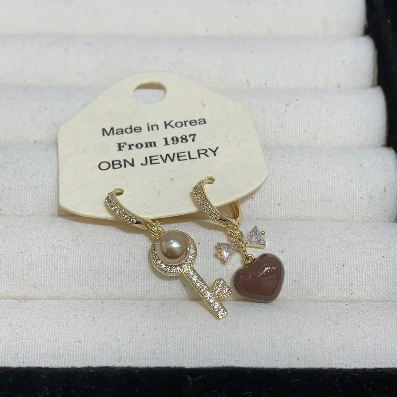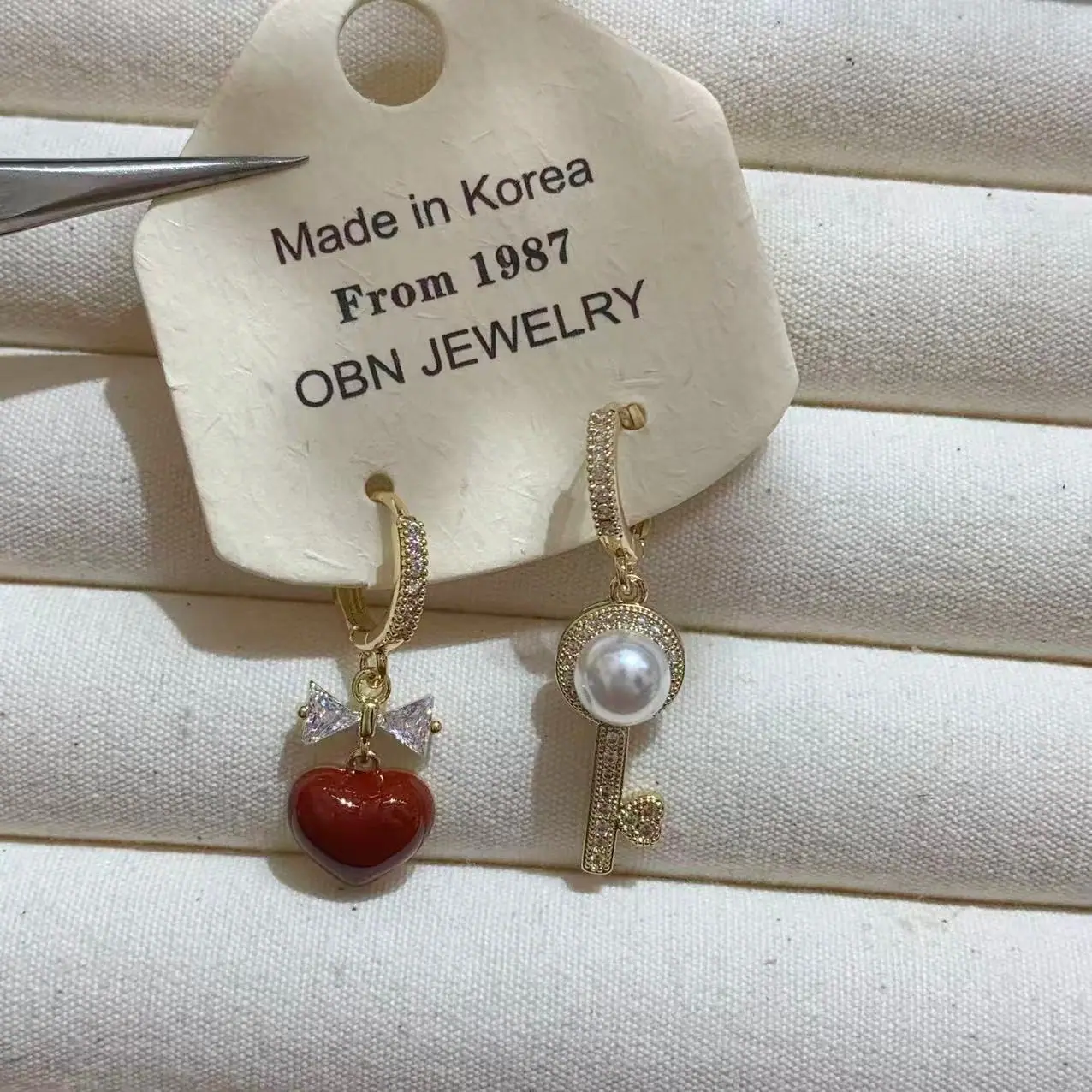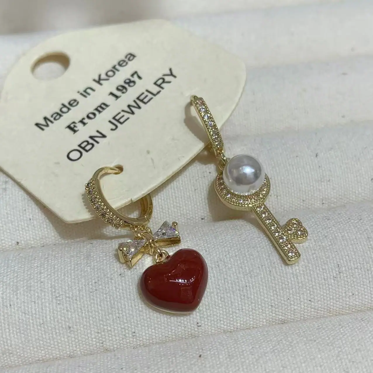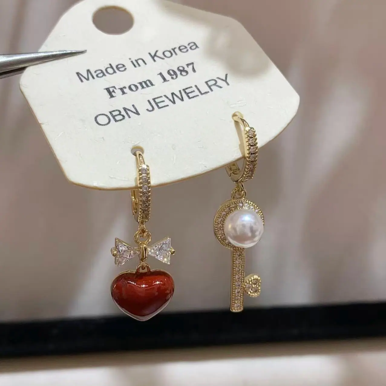 Compre Brincos Assimétricos Chave Coração da Moda Clássico Personalidade Nicho Brincos Simples Versátil Brincos de Luxo Leve para Mulheres no atacado no Joom.pro